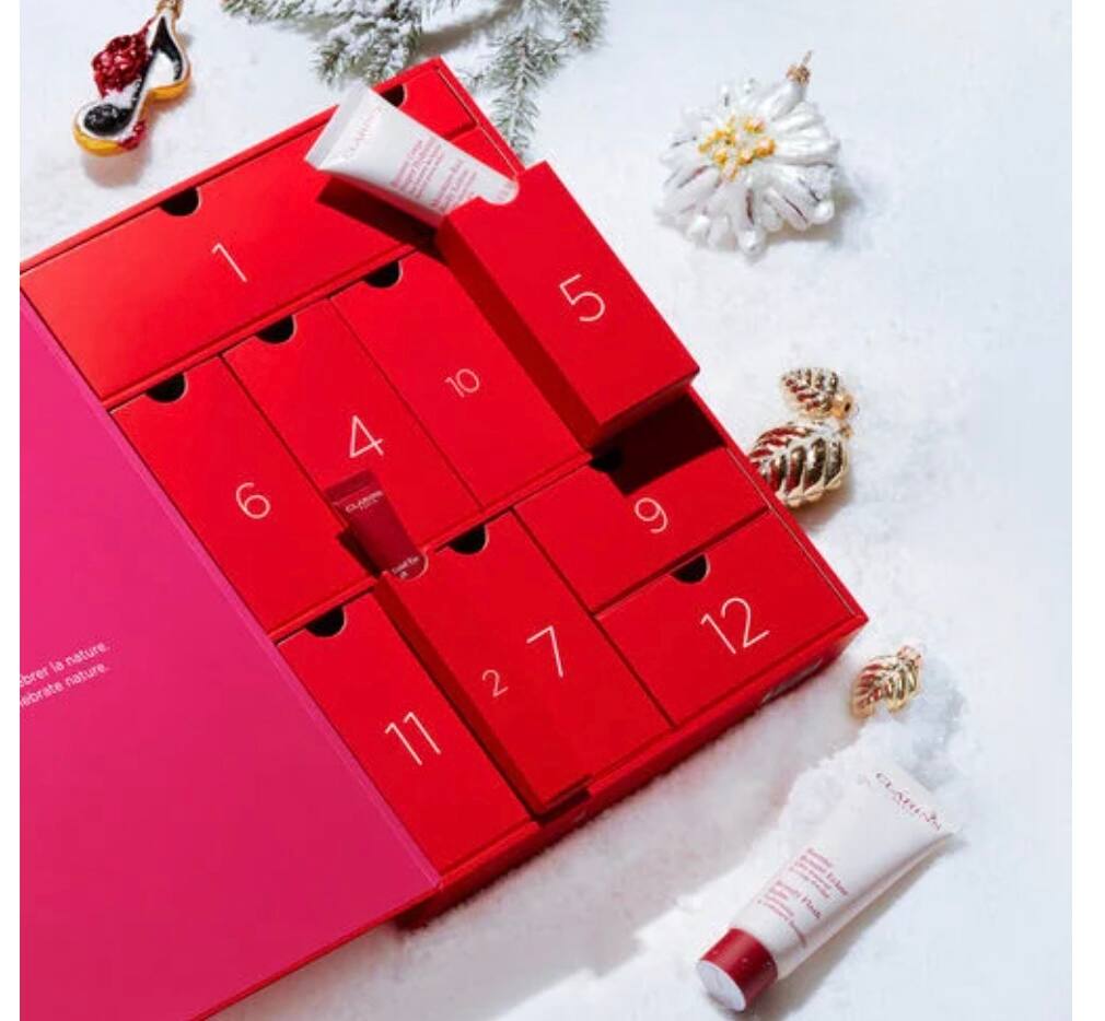 This Clarins calendar includes a variety of skin care and makeup products for a beautiful Christmas!