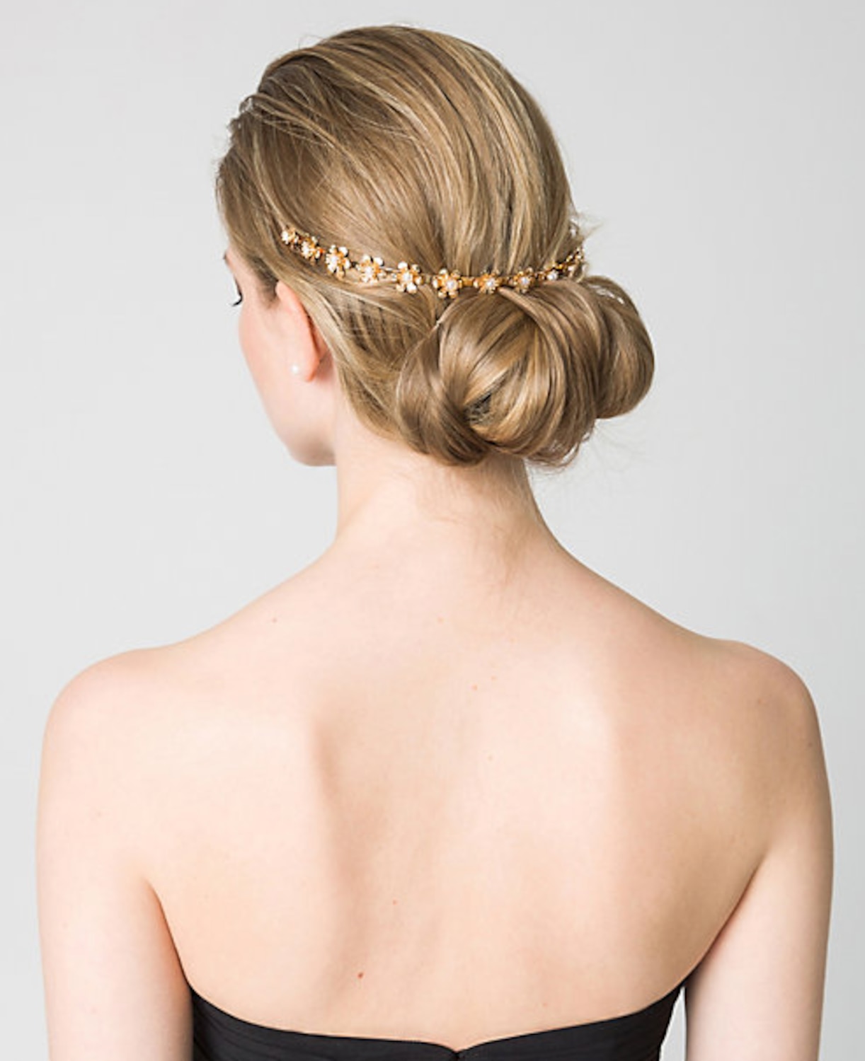 If wearing a jewel embellished headband is too much bling try a floral design with pearl-like details that sits at the back of your hairstyle.