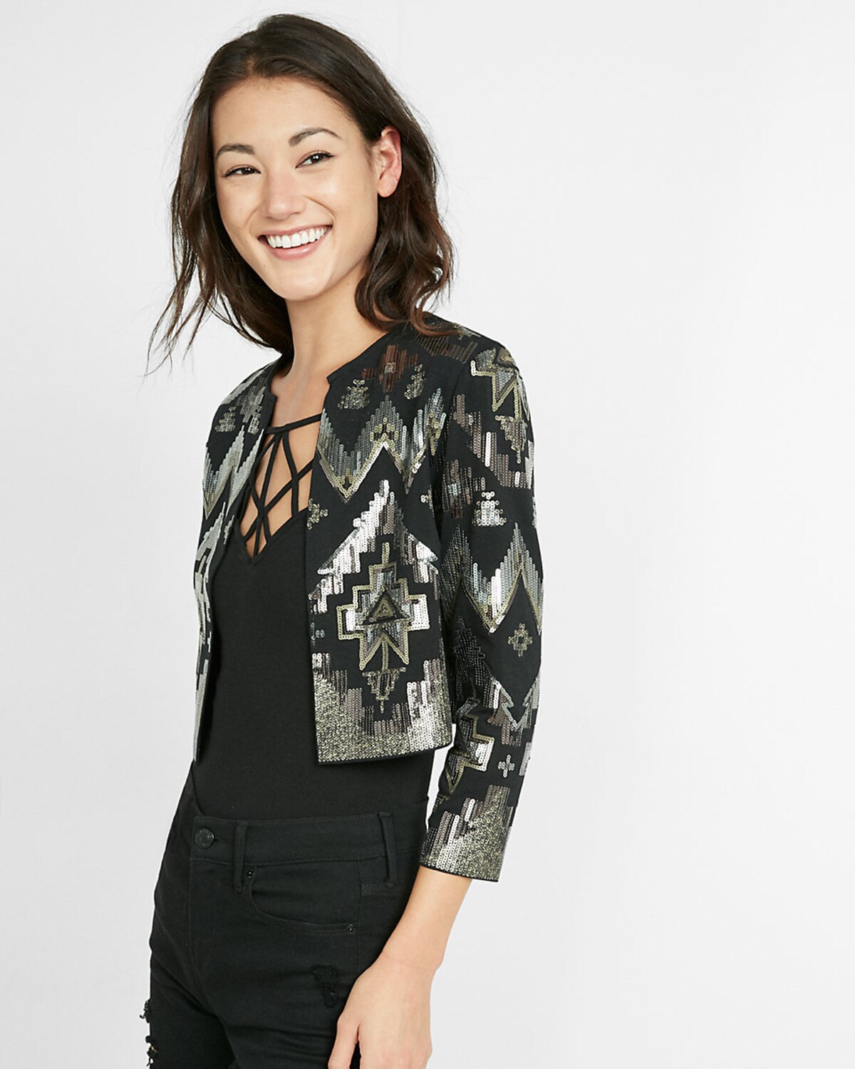 For those of you with a penchant for sparkles check out these New Year’s Eve worthy pieces with beading, sequins and rhinestones built right into the garment. Whether you’re looking for a lot or a wee bit of glitter, these fun fashion will help you say hello to the New Year, in style.