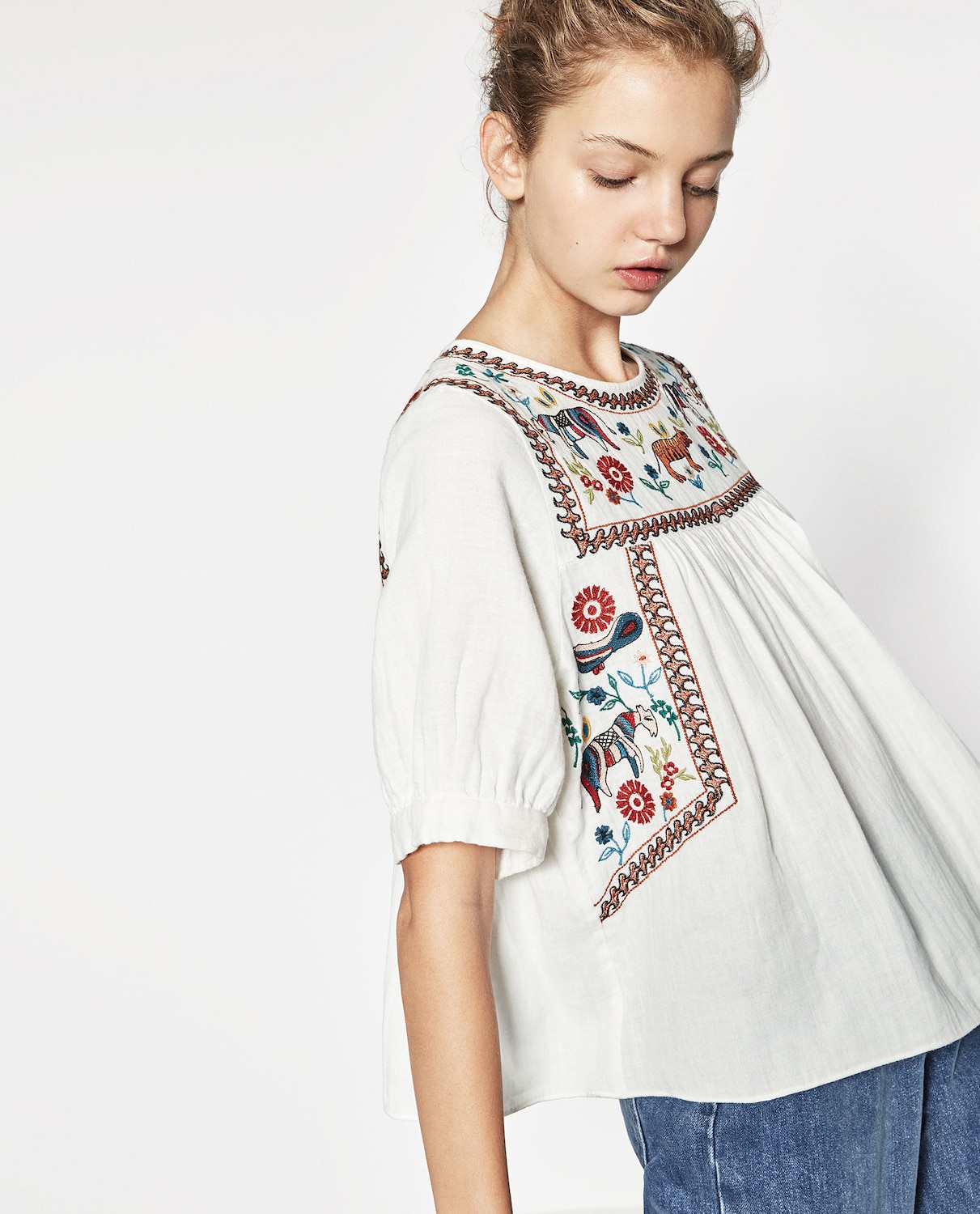 Embroidered top, $46, zara.com.