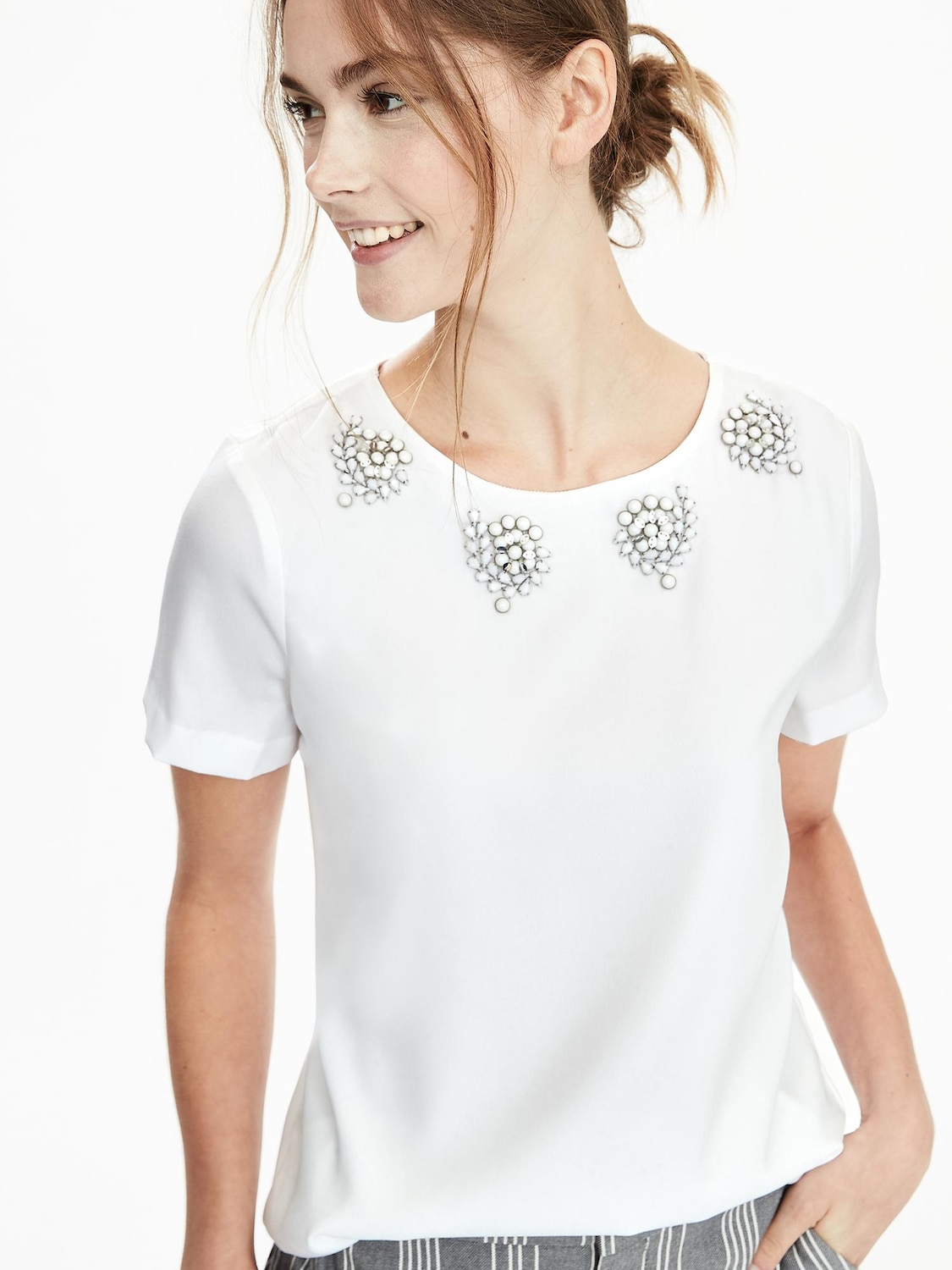 Short-sleeve embellished tee, $77, bananarepublic.ca.