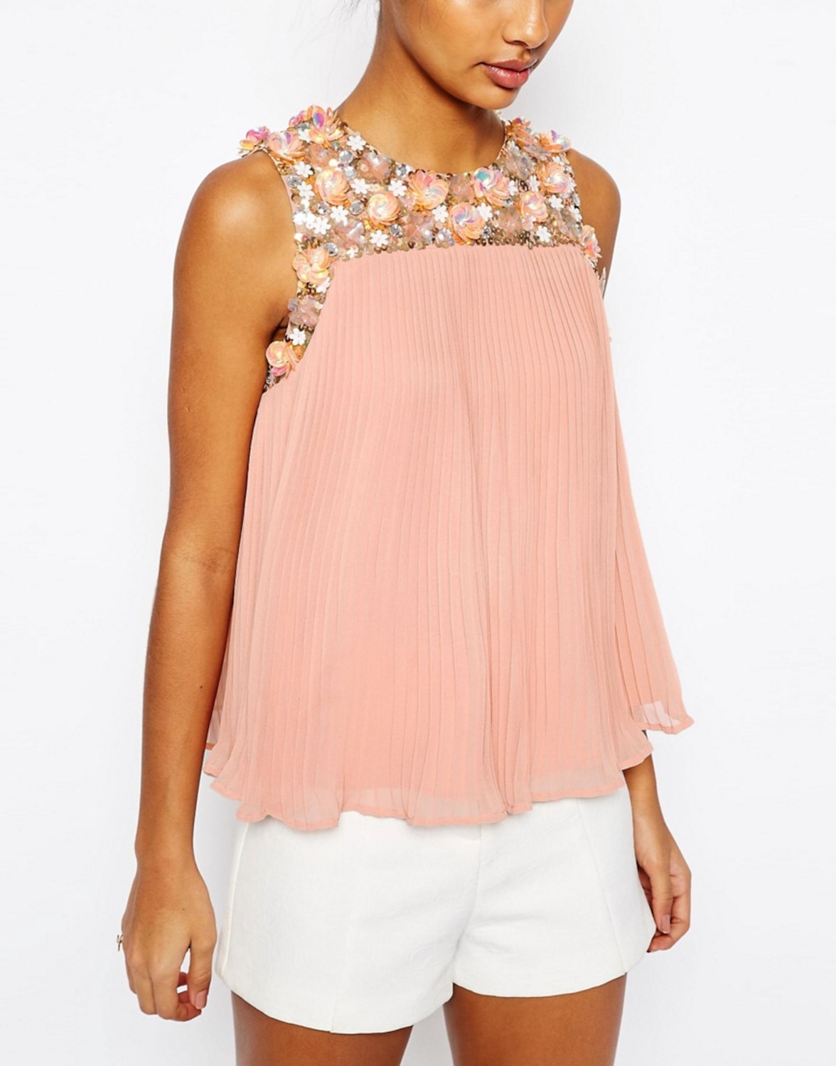 ASOS Sleeveless Flower Embellished Pleated Top, $79, asos.com.