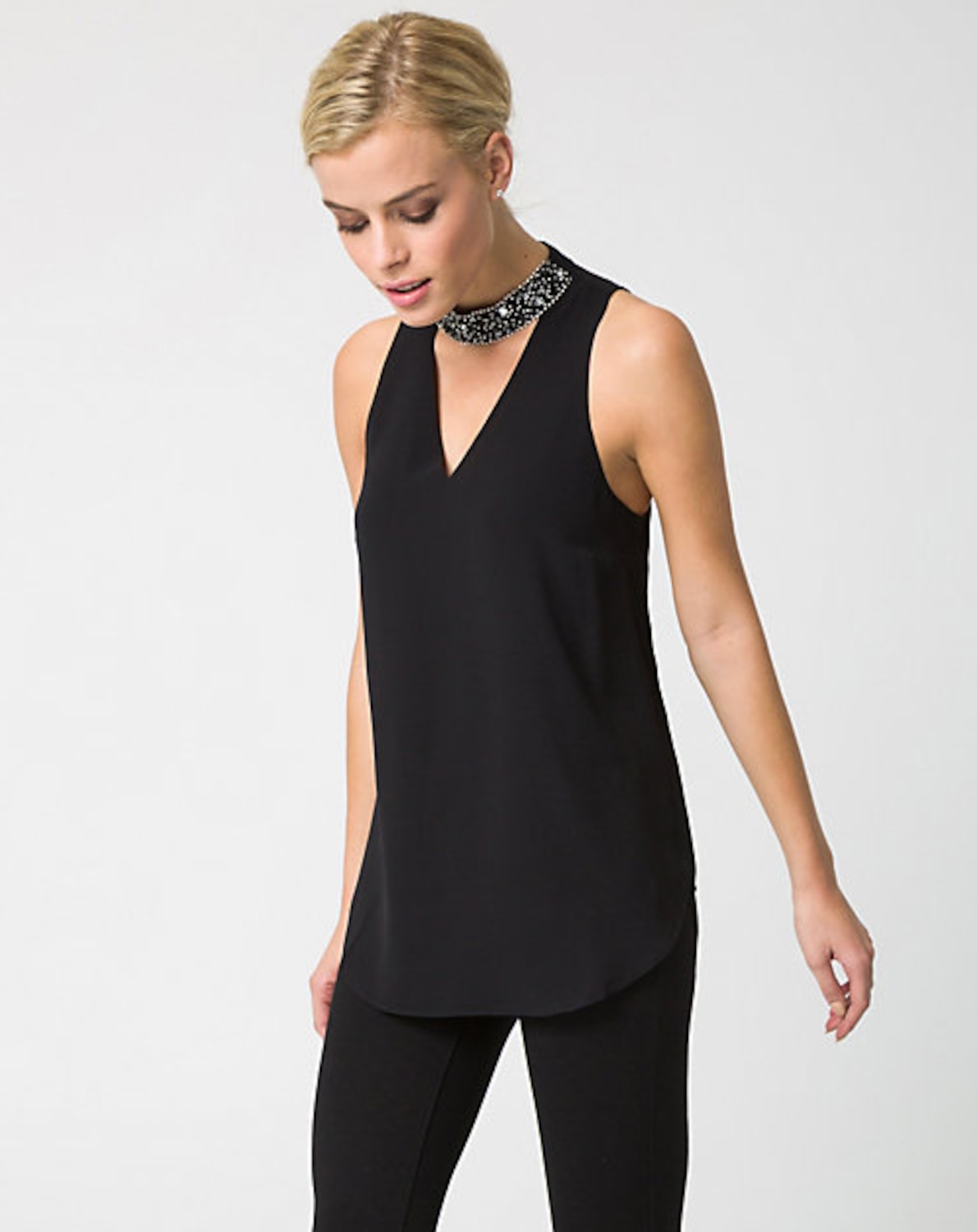 Asos Curve embellished shell top, $82.30, asos.com.
