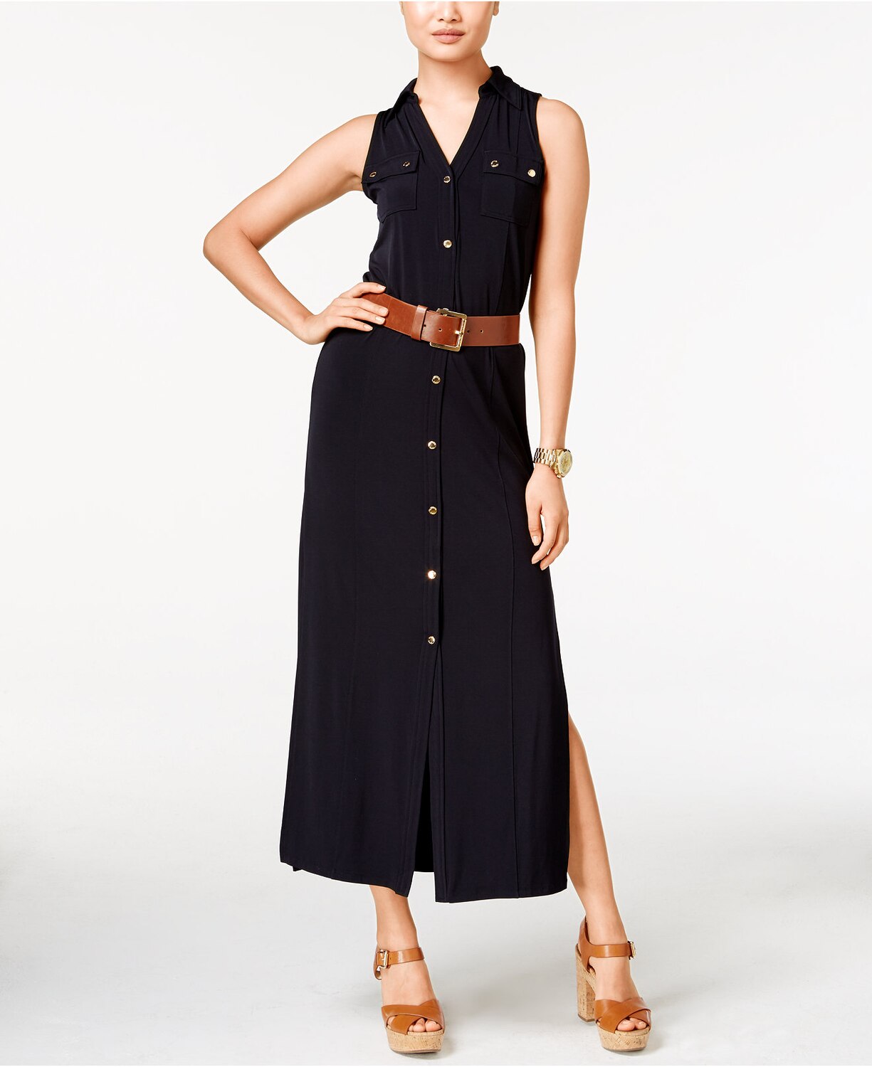 MICHAEL by Michael Kors belted maxi shirtdress, $187, macys.com.