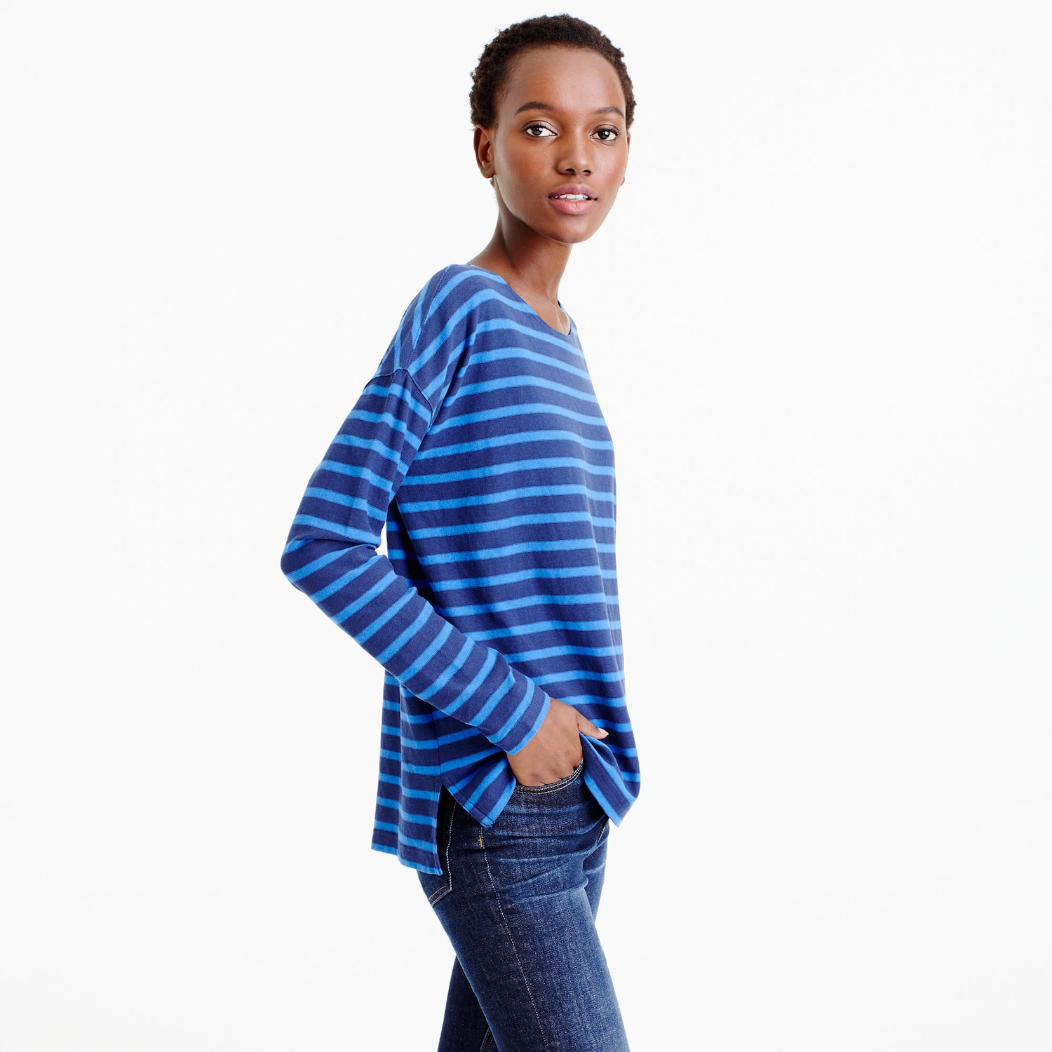 Breton stripes originated in France (Brittany, more specifically) and were part of a seaman's uniform in the 1800s. The design was alternating white (2 cm) and blue (1 cm) horizontal stripes—a look so trendy that in the 1900s it spread from seamen to the public as a chic style statement.