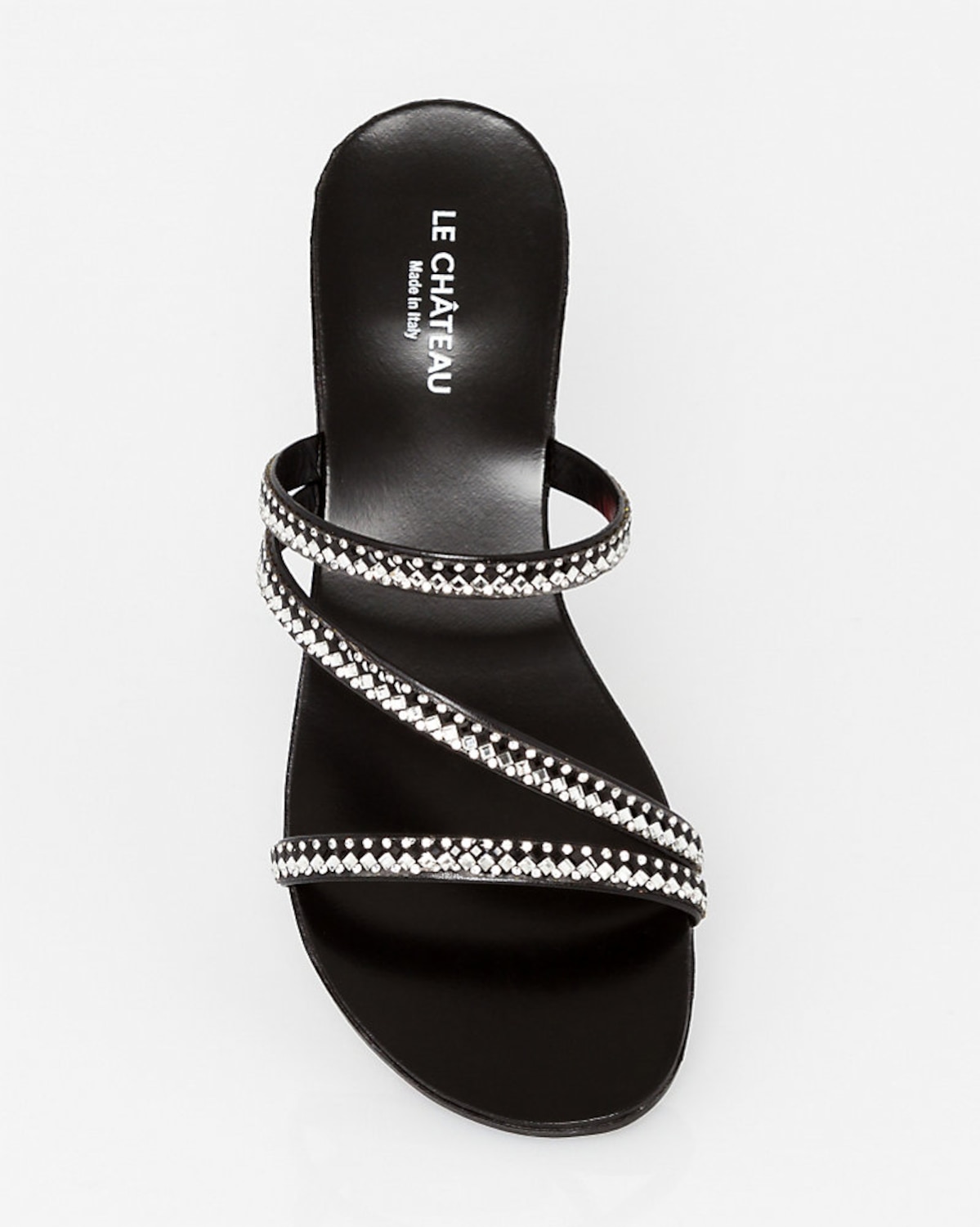 Embellished leather slide sandal, $60, lechateau.com.