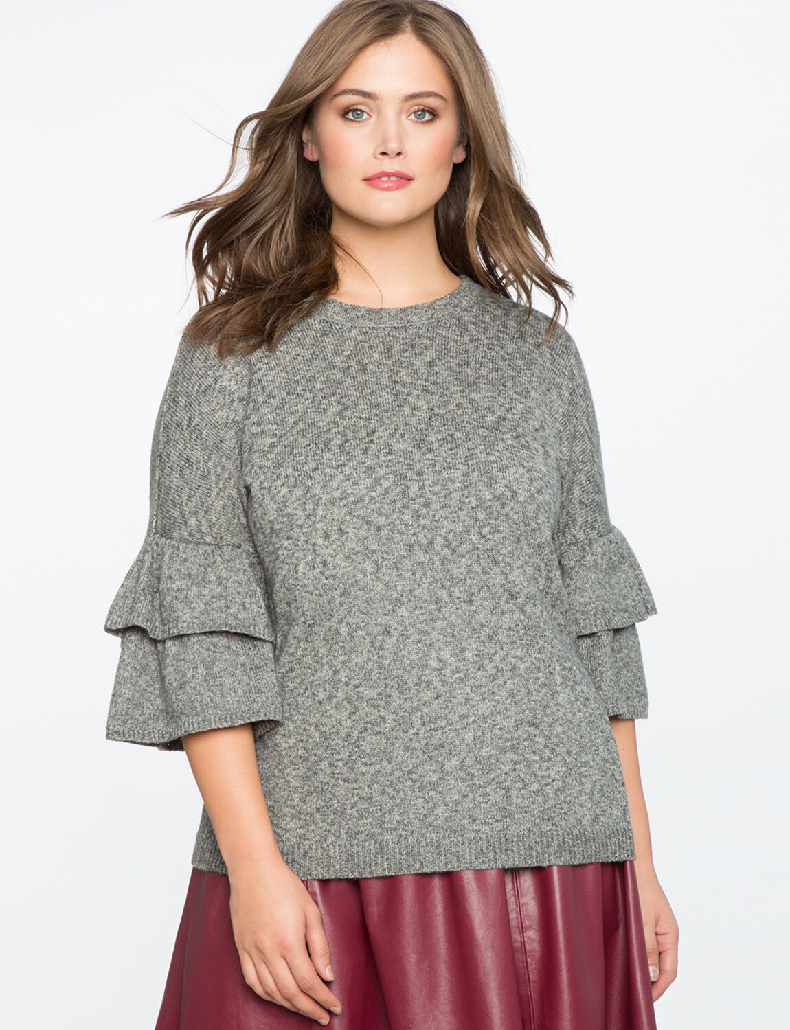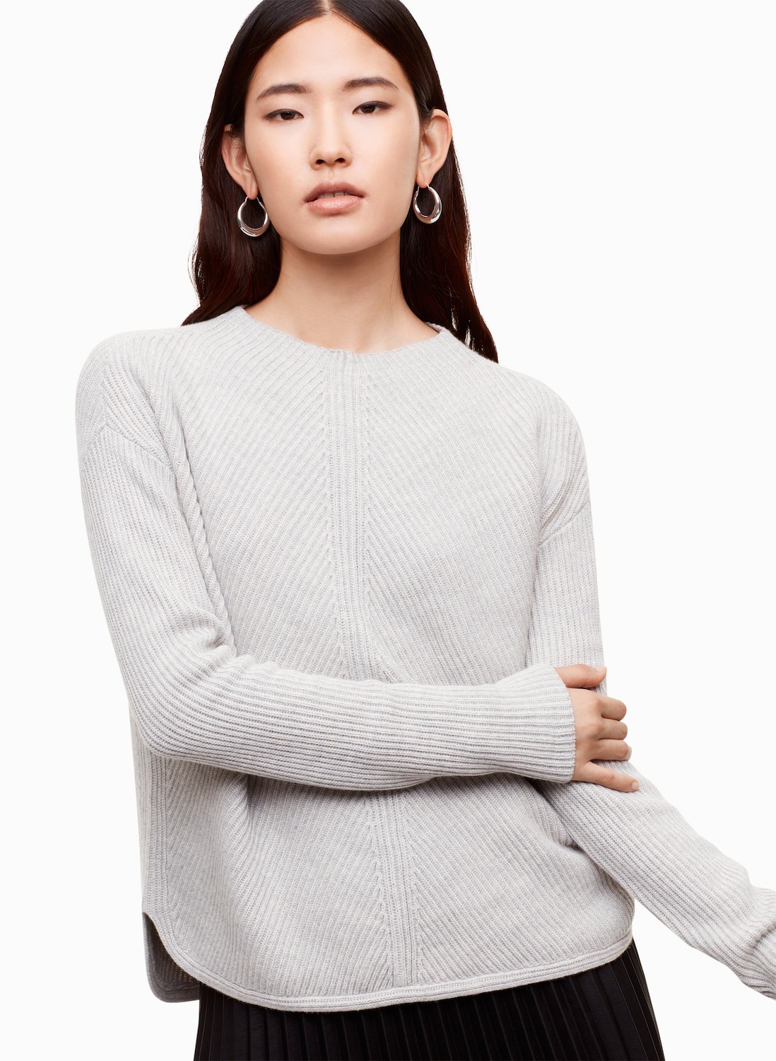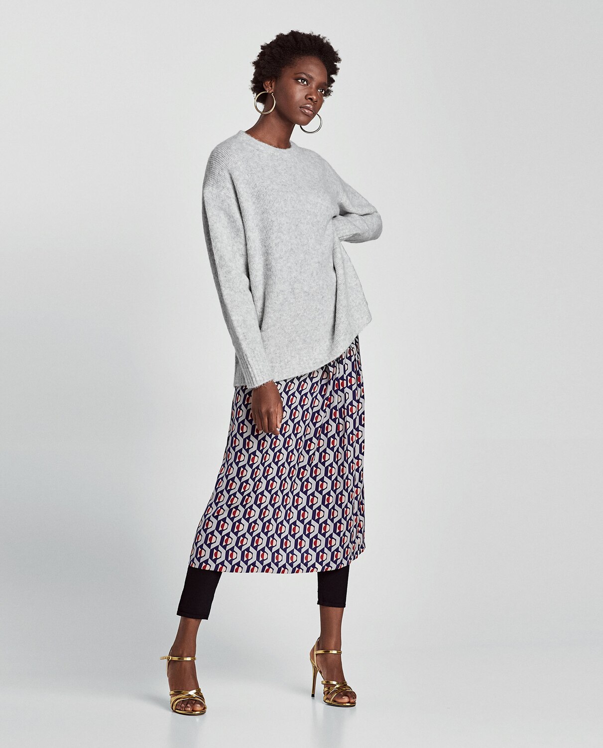 Wear your sweater paired with a sweet midi skirt with some volume. The addition of a feminine bag and heels will complete this look that would fit right in at the office.