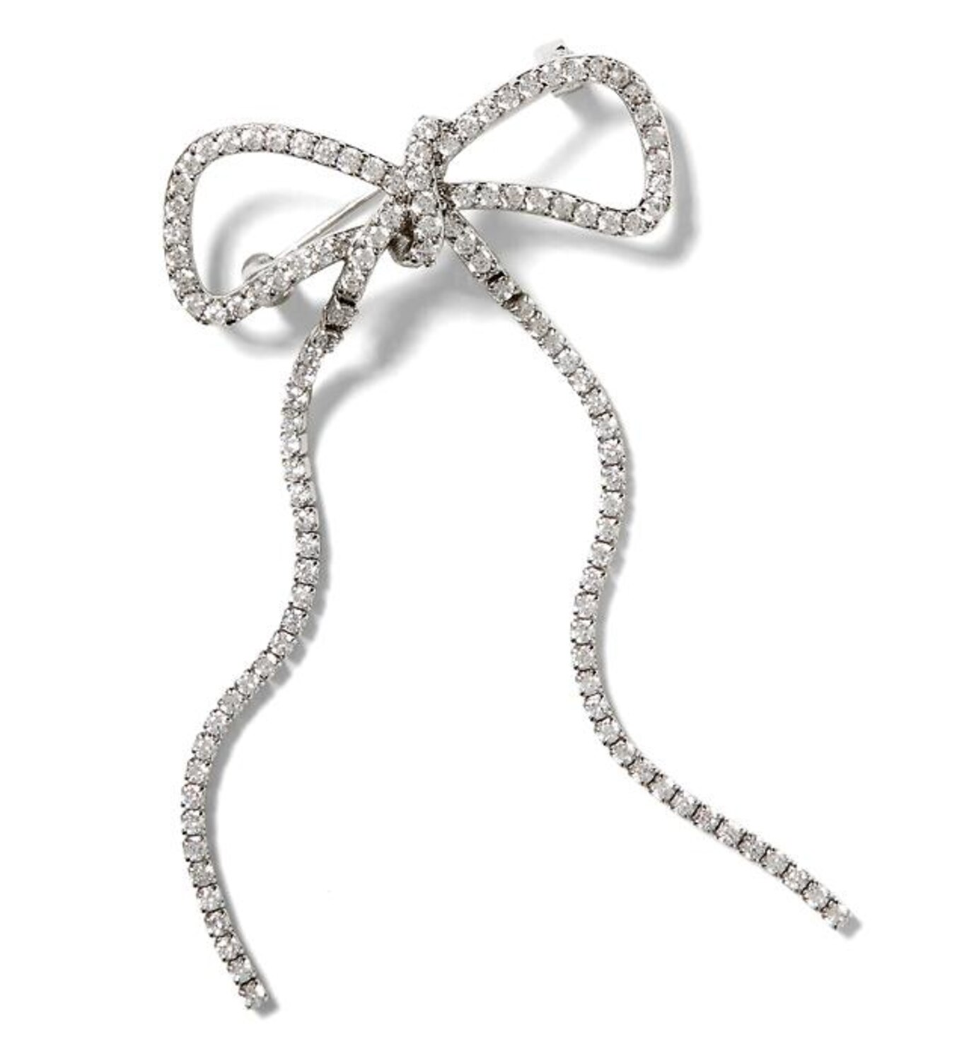 A cute bow with classic sparkly detail makes this the perfect addition to your lapel.
