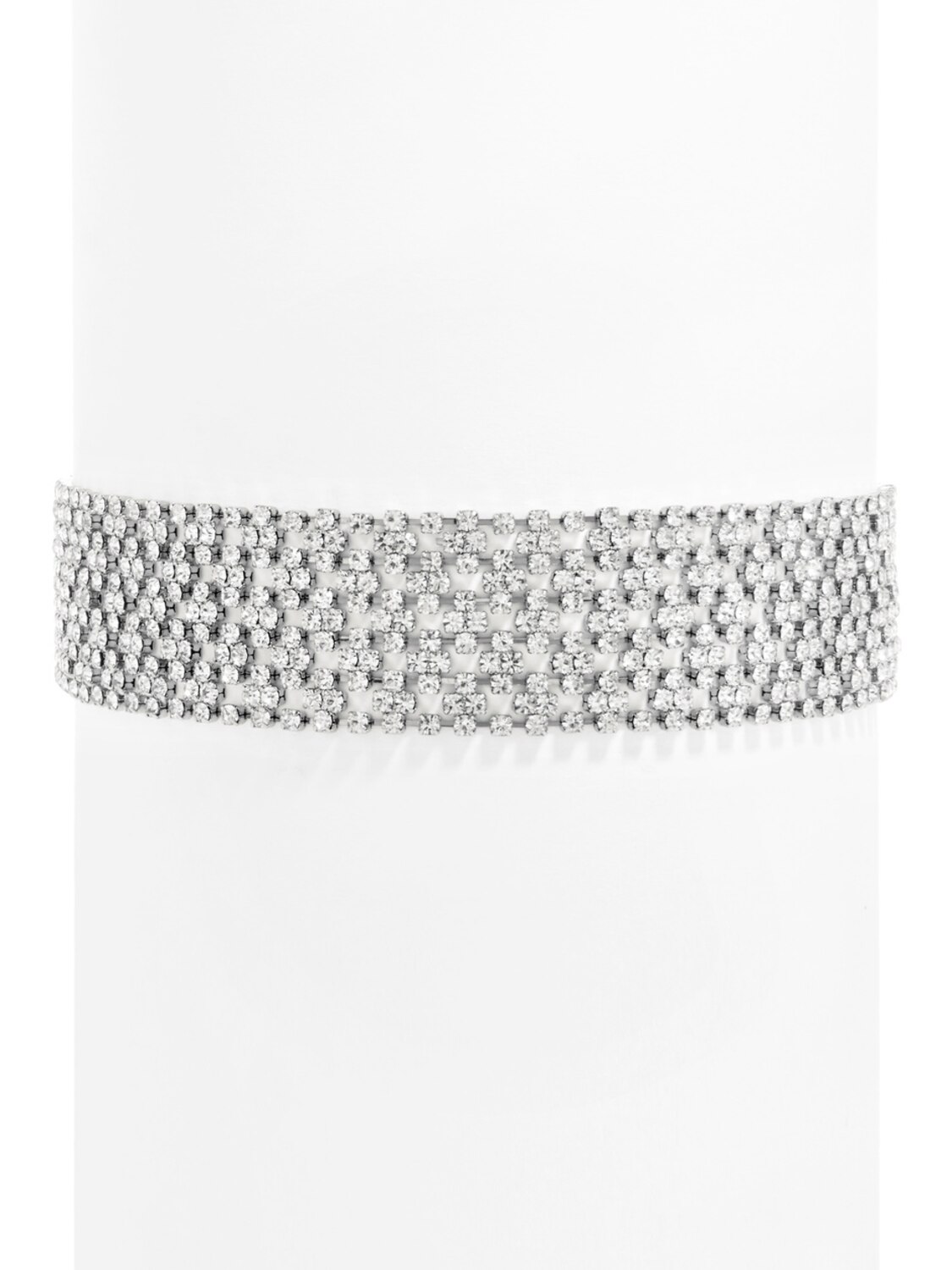 Steal the spotlight this holiday season with this bold crystal mesh choker—a scene stealer.
