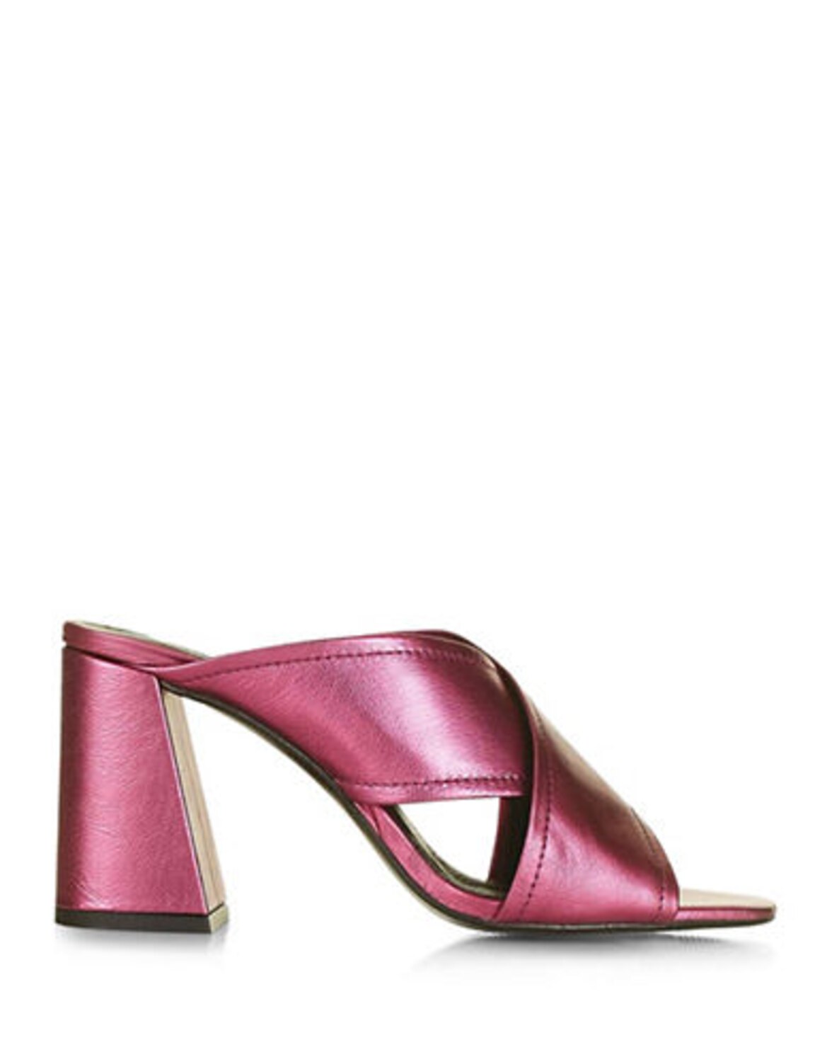 Topshop pink metallic slides, $140, thebay.com.