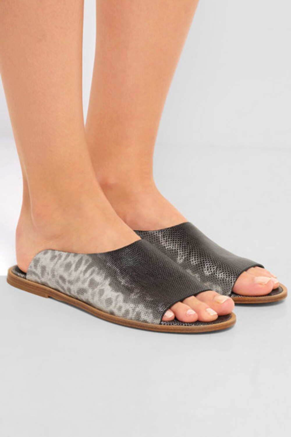 Vince lizard-effect slides, $210, net-a-porter.com.