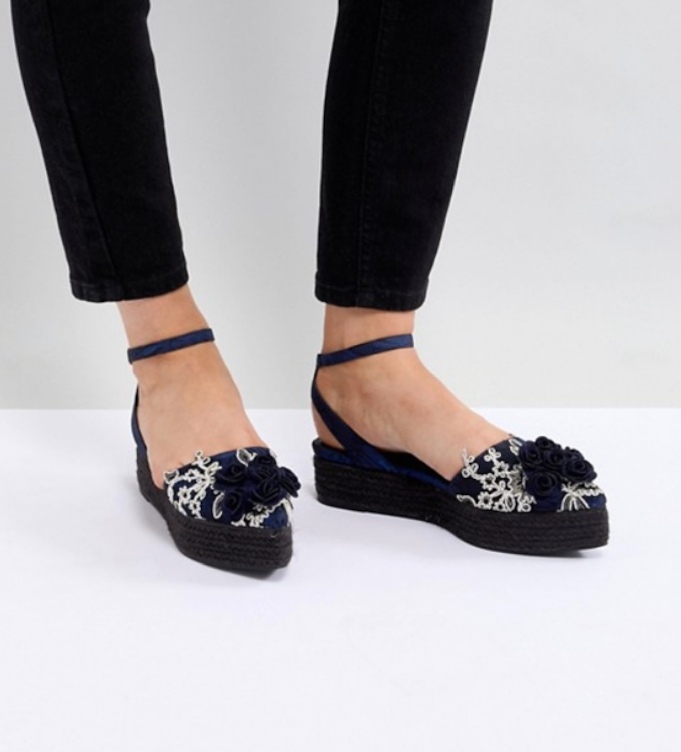 We know that while many prefer no heel, they still want a bit of height—which is why the flatform is a great option. Forget Spice-Girl-inspired sneakers though, and opt for these pretty navy espadrilles.