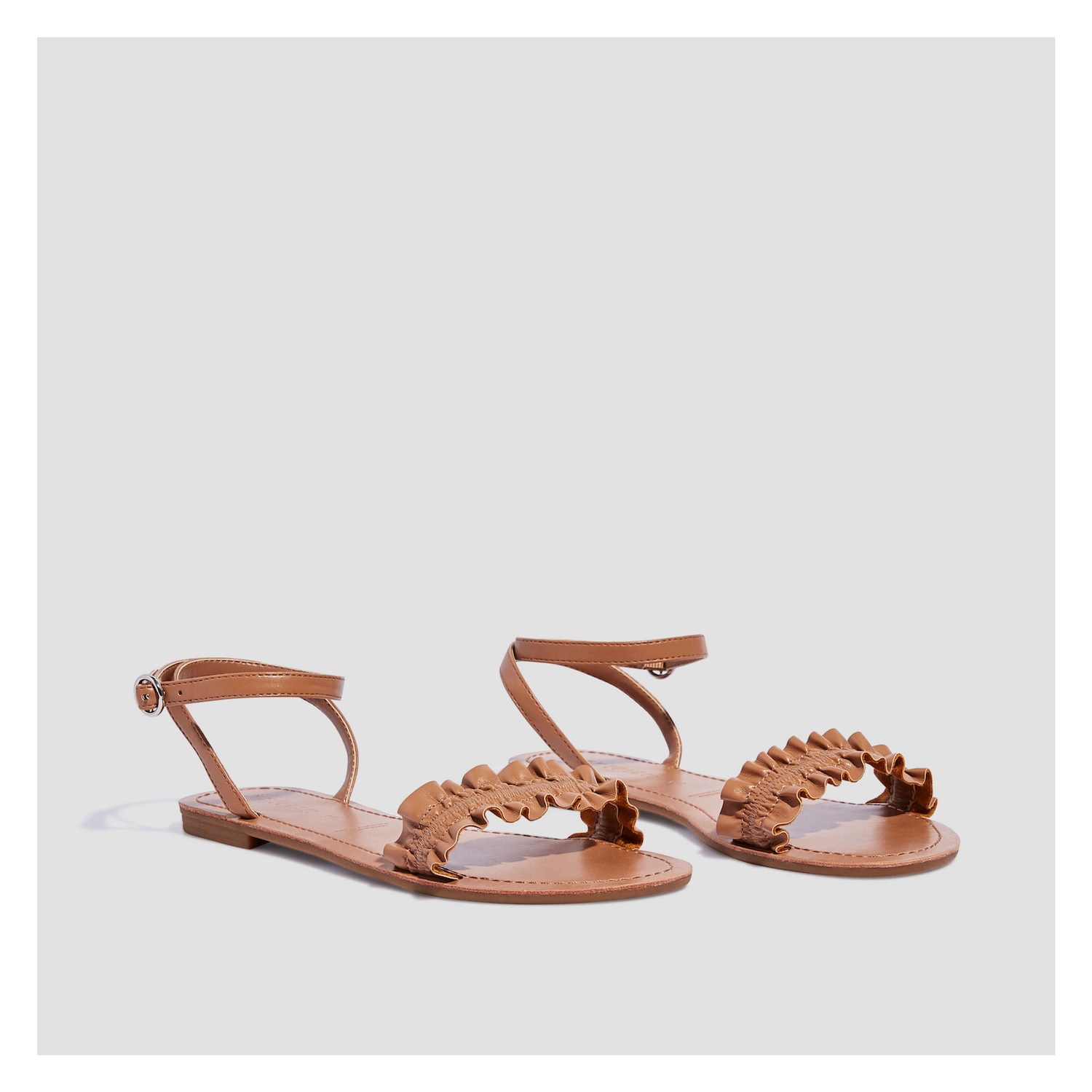 If you prefer to let your outfit be the star of the show, you can't go wrong with a simple pair of tan ruffled sandals.
