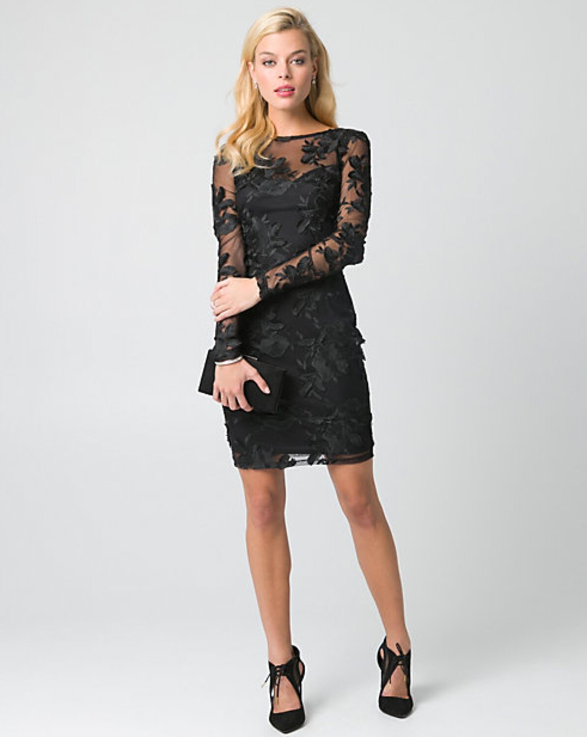 Fitted dress with eyelash lace, $150.