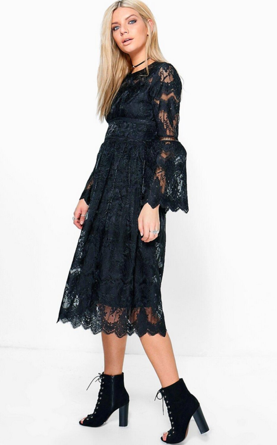 Boutique Tasha lace flute sleeve smock dress, $82.