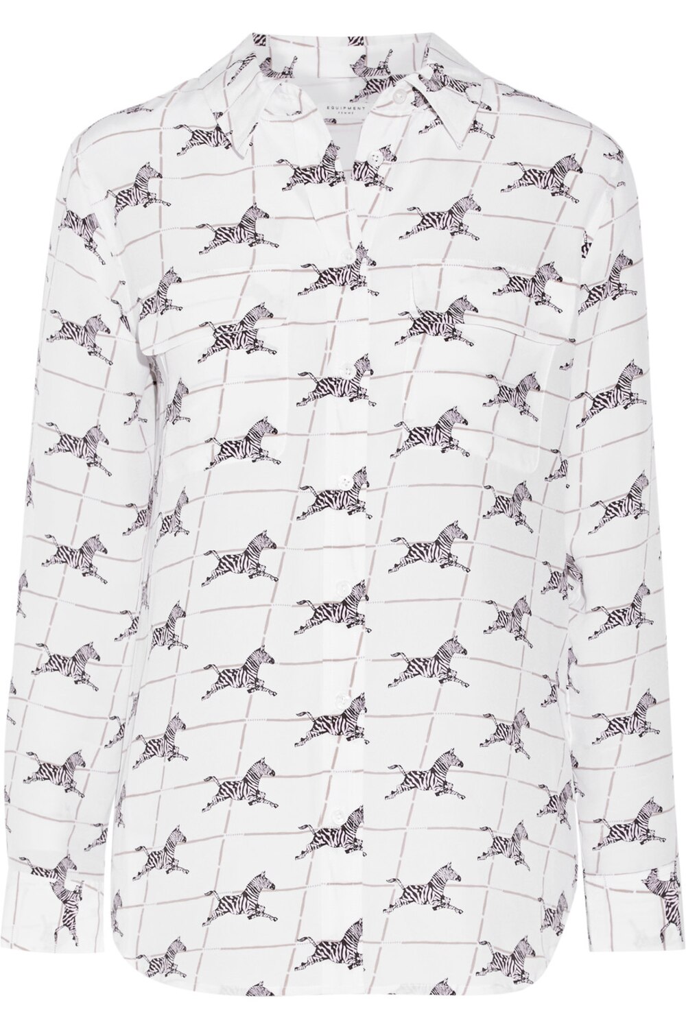 Equipment zebra silk blouse, $133, theoutnet.com.