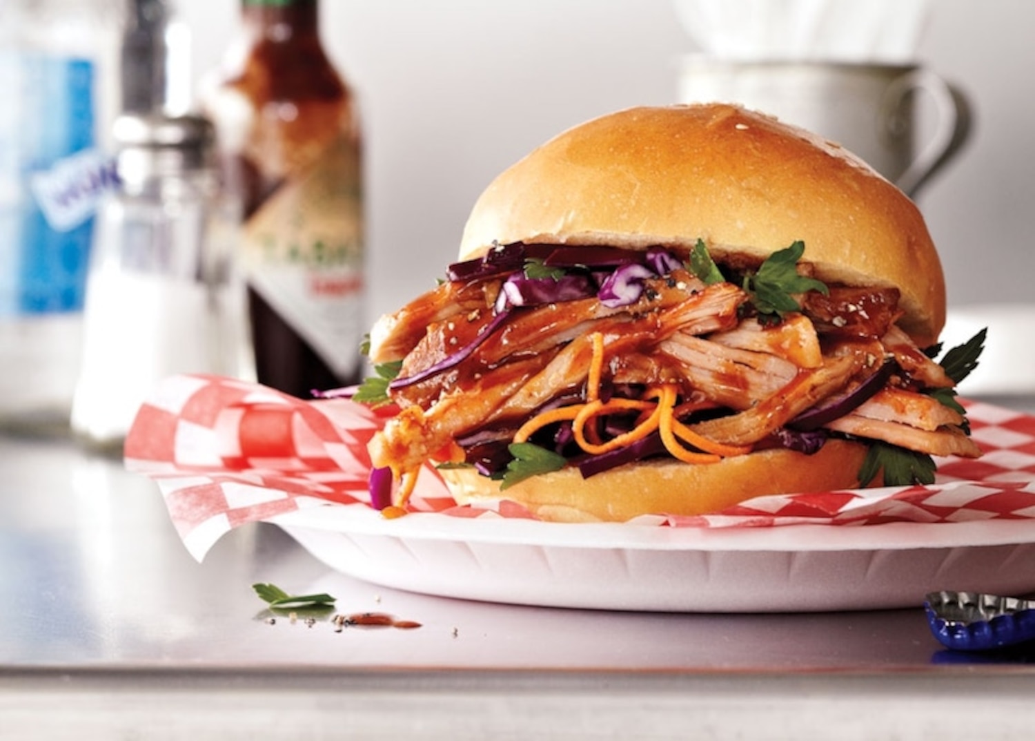 Serve this saucy pulled pork as sandwiches: piled high on buns, with bowls of garnishes, such as pickled jalapeños, sour cream, shredded cheese and thinly shredded red cabbage and let guests build their own sandwiches.