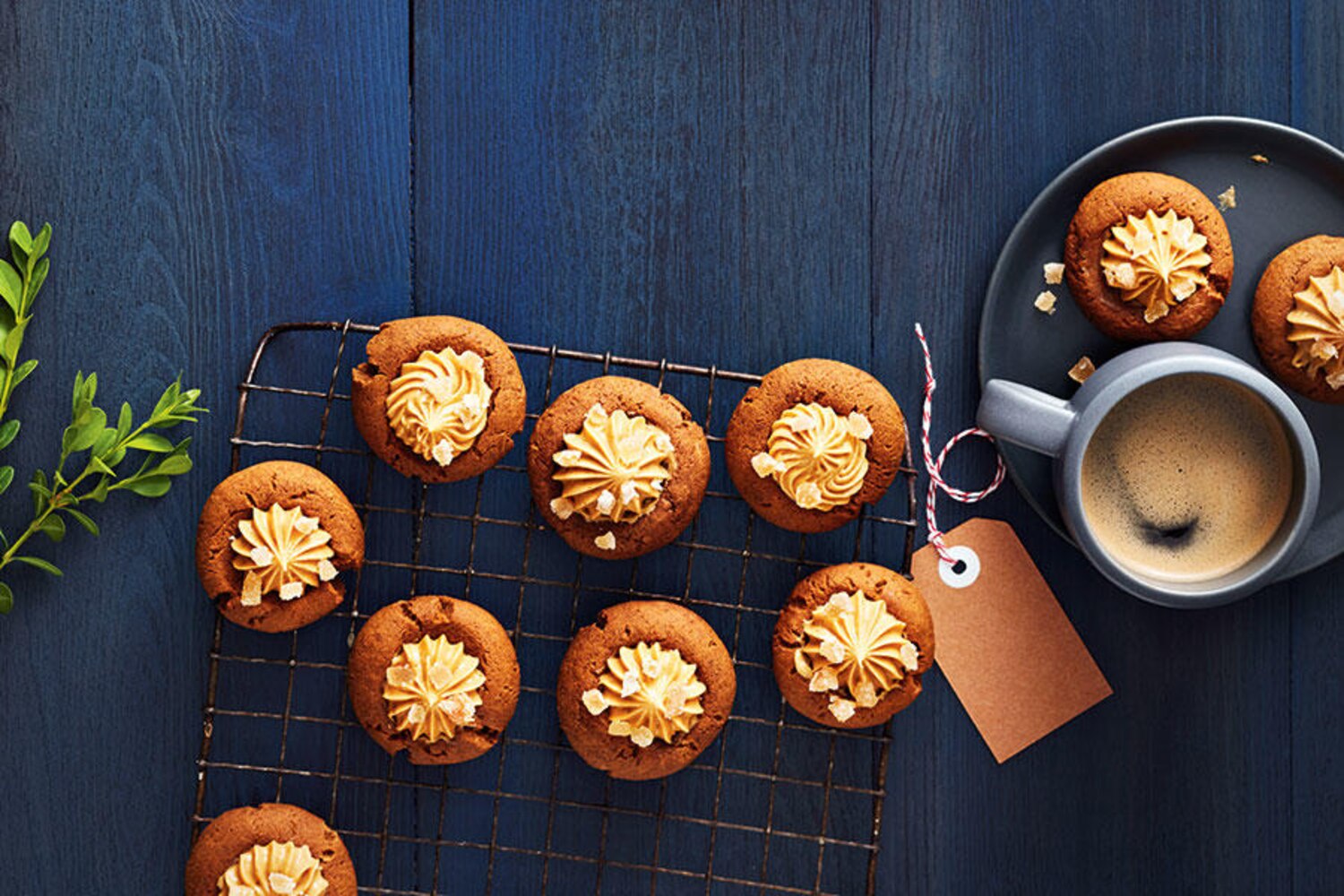 These soft, chewy ginger-spiced thumbprints are filled with a tangy cream cheese icing for the ultimate holiday treat.