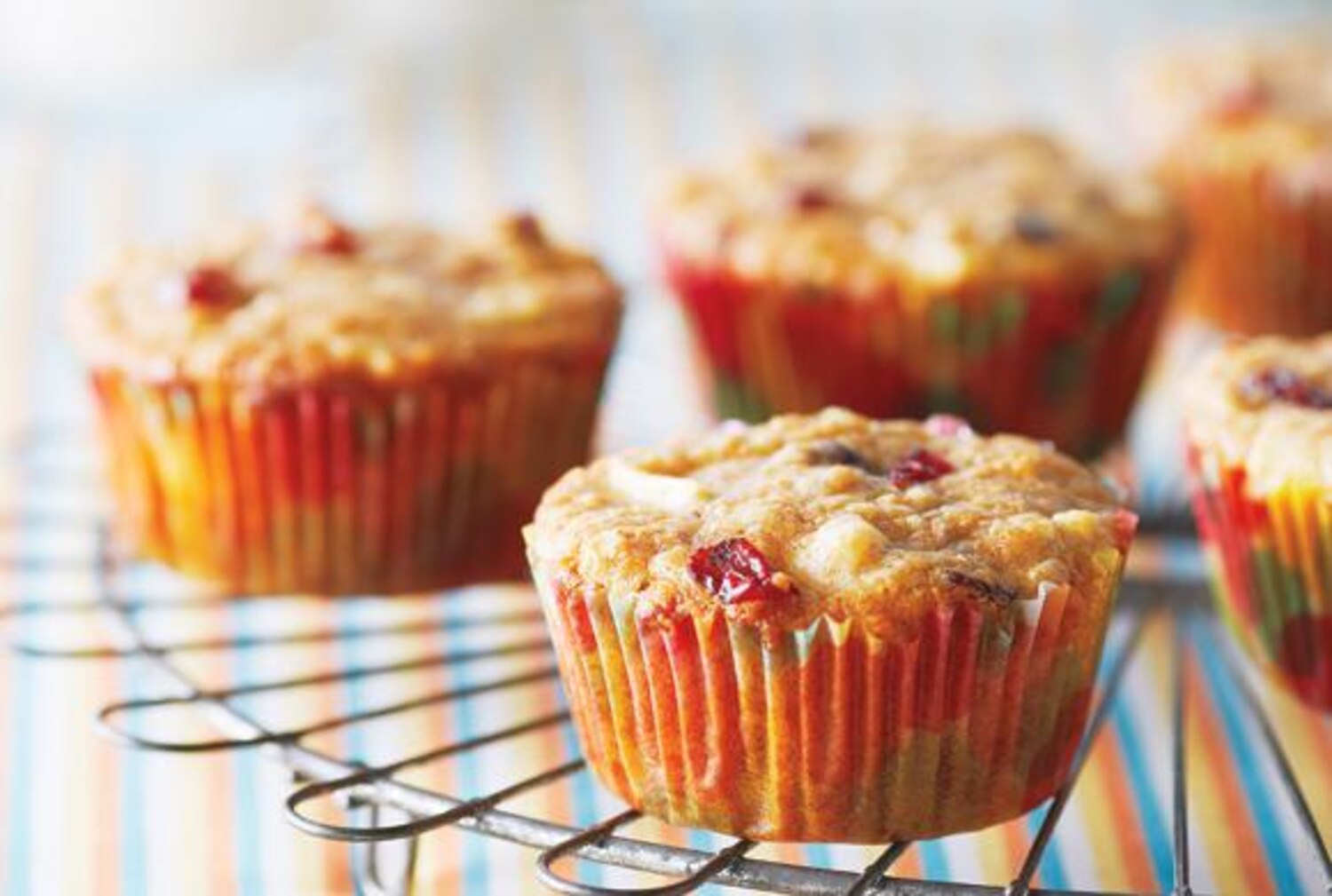 Adding fresh apples to this muffin batter is a nice way to incorporate fruit in a baked treat. Dried cranberries add a touch of tartness, but you can use raisins or any other dried fruit.