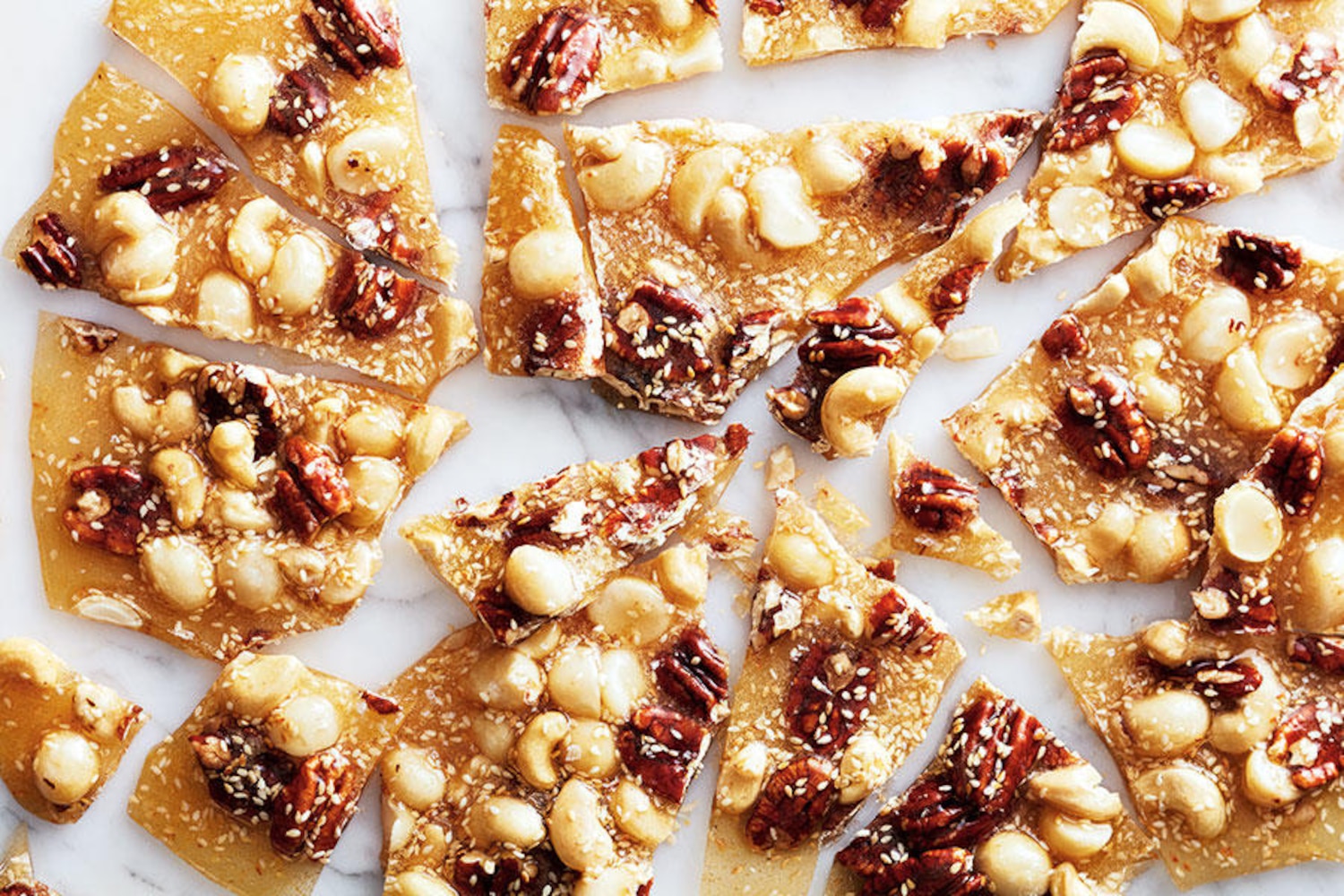 This treat tastes like a cross between traditional peanut brittle and sesame crisps.