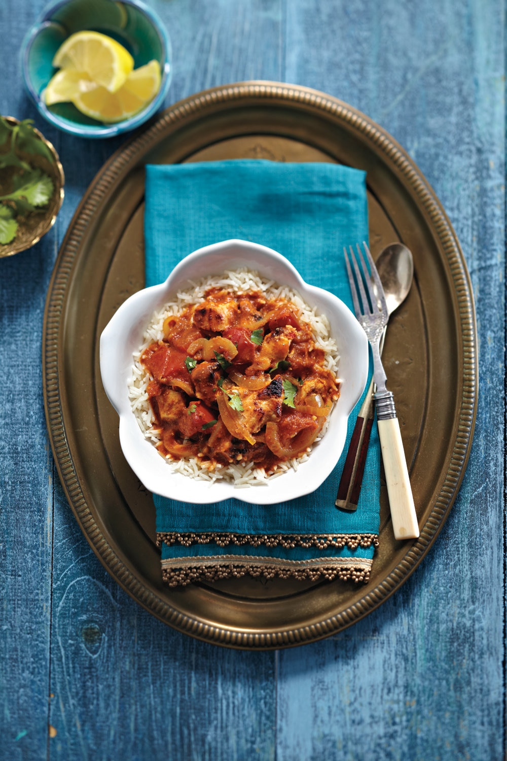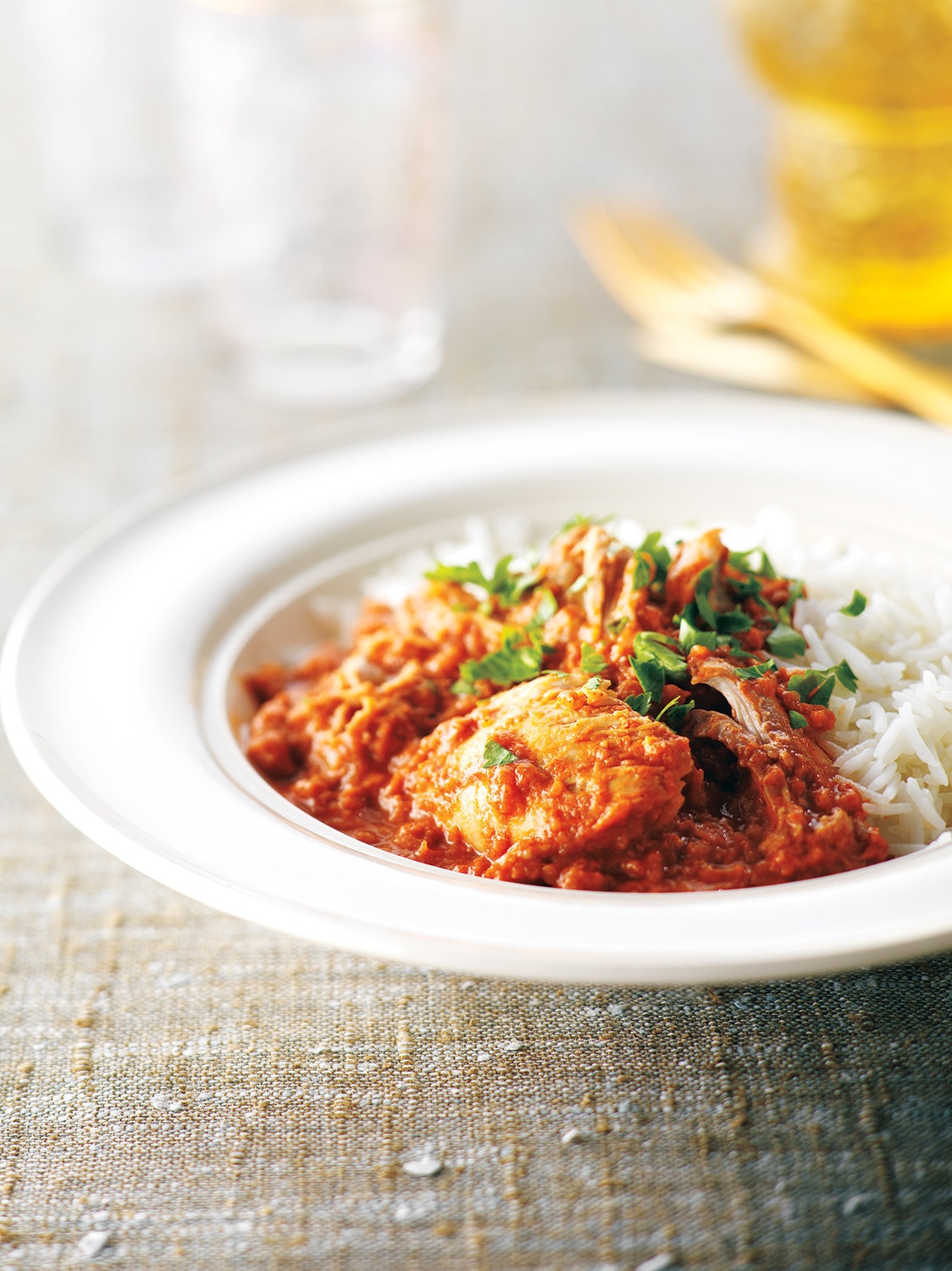 This recipe can easily be left to simmer away in a slow cooker for eight hours before adding the chicken.