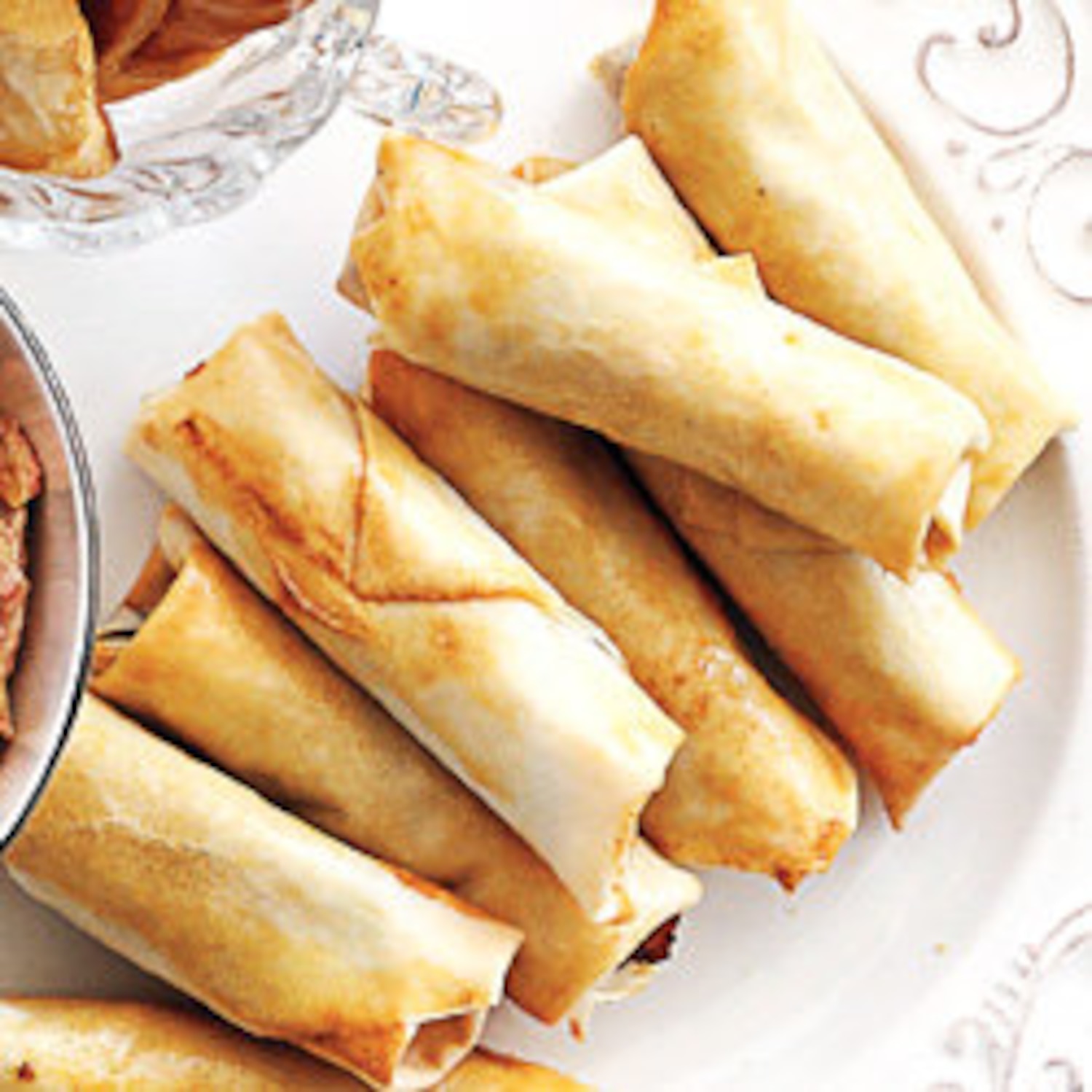 East meets West in these tasty little bites. We've doubled up on the spring roll wrappers, which provides extra crunch and prevents the filling from bursting out.