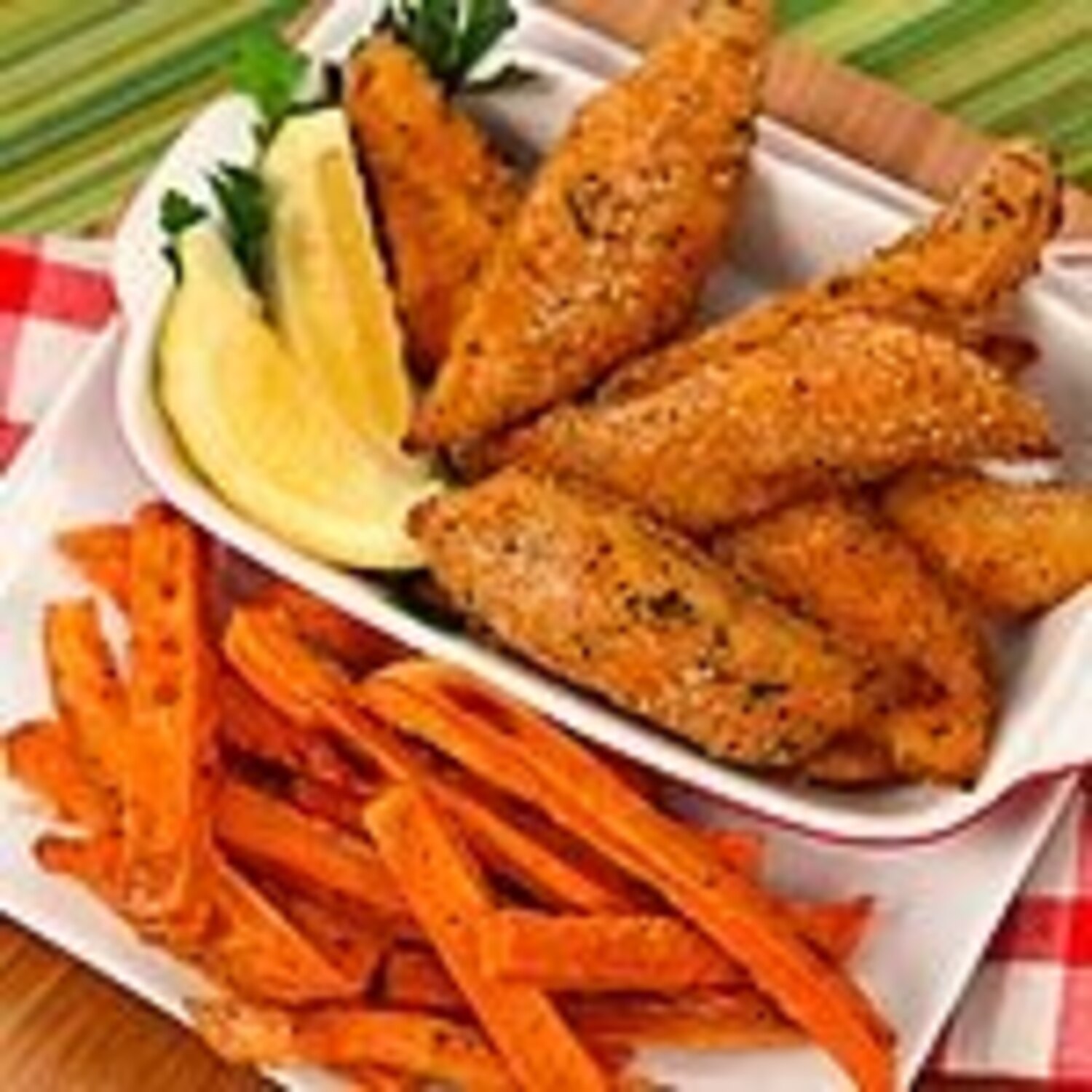 Breaded Fish Fingers with Sweet Potato Oven-Fries