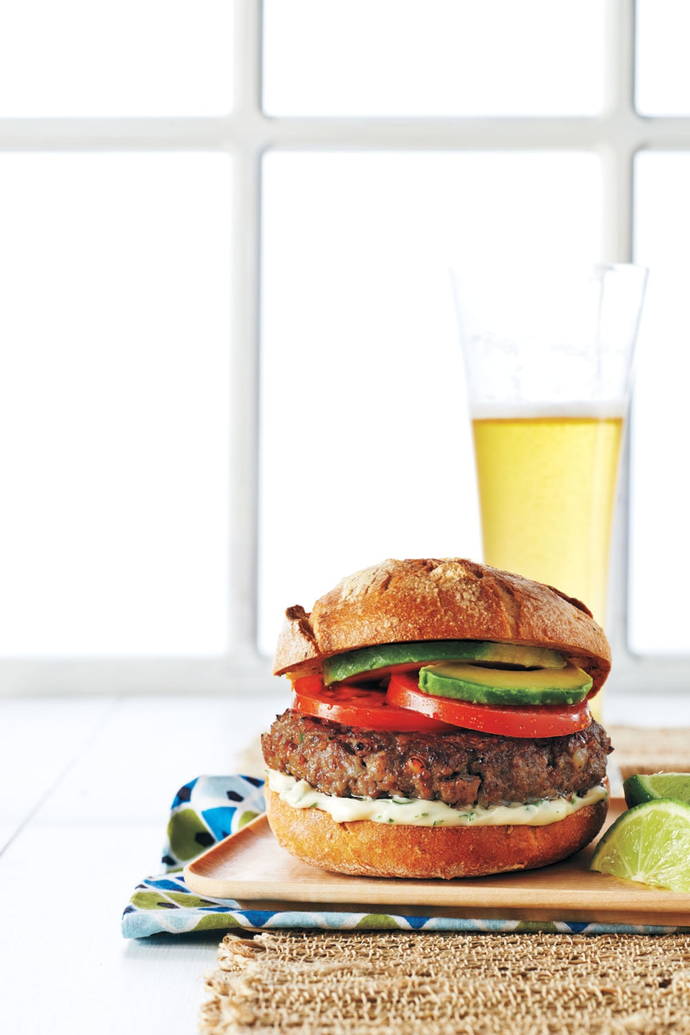 Beef and Lentil Burger With Cilantro Lime Mayo