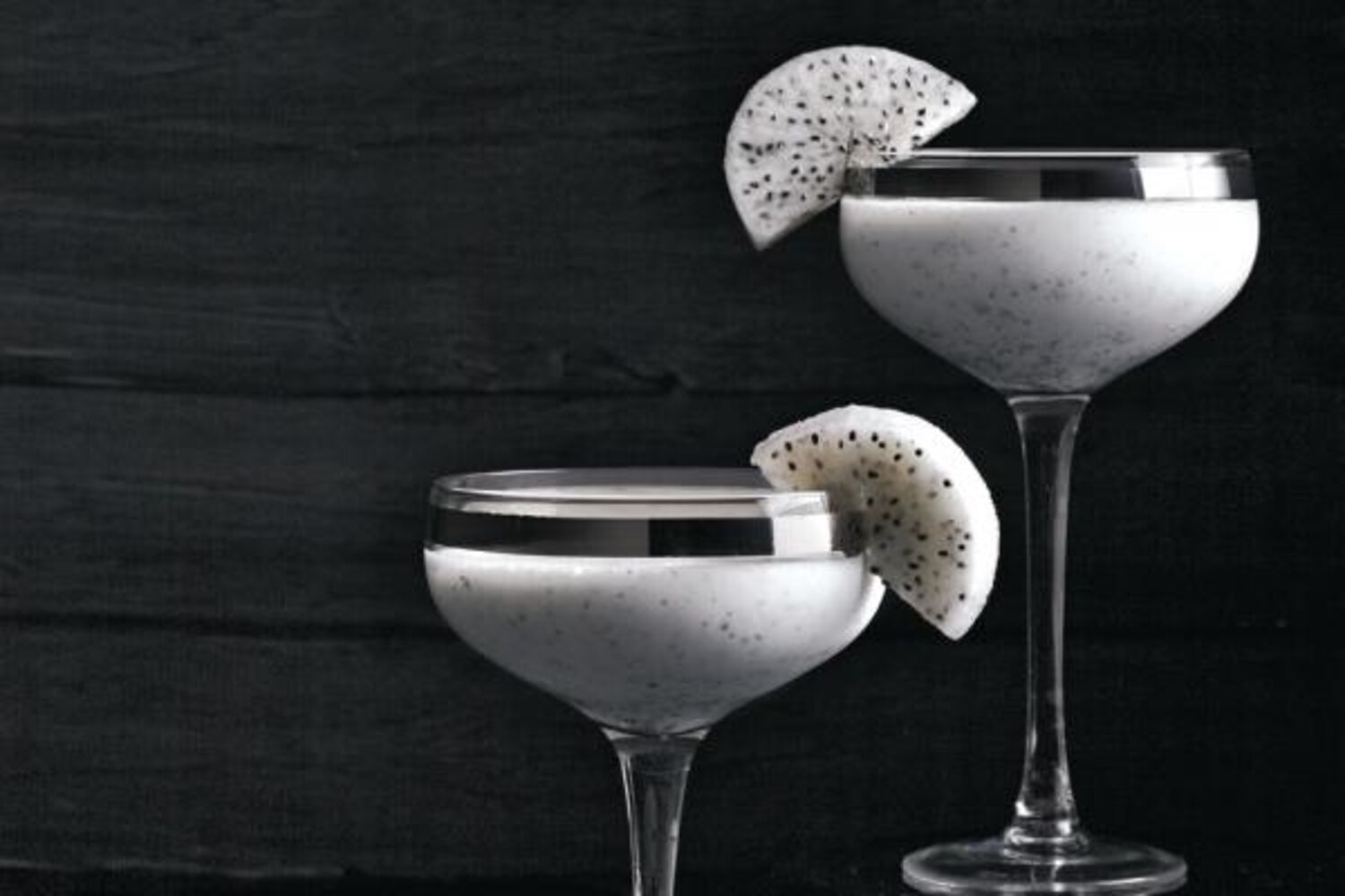 Dragon fruit is a type of cactus fruit that can be found in Asian markets and in your grocery store's exotic fruit section. Covered with magenta skin and dotted with acid-green scales, it's a beautiful sight. Inside, the mild flesh is flecked with tiny black seeds. We used the white variety, but the flesh can also be red. Buy extra fruit and cut it into pretty half-moons to garnish the rims of the glasses.
