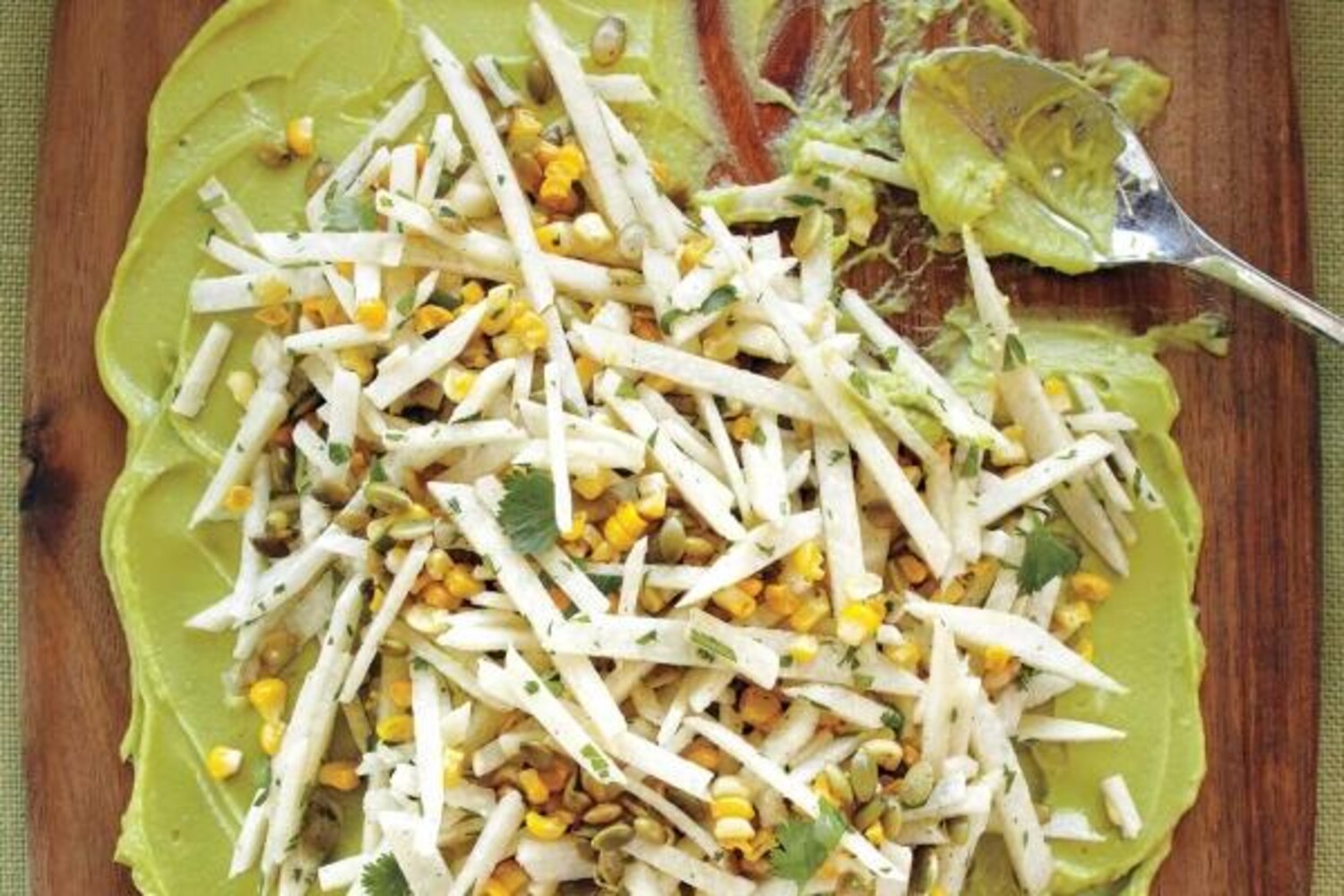 Kohlrabi looks a little like an alien's head, but its raw radish–cabbage flavour is lovely in salads. Didn't know you could eat rutabaga raw too? You bet! The dressing is equally tasty over julienned celery root or broccoli stems, or shredded Brussels sprouts.
