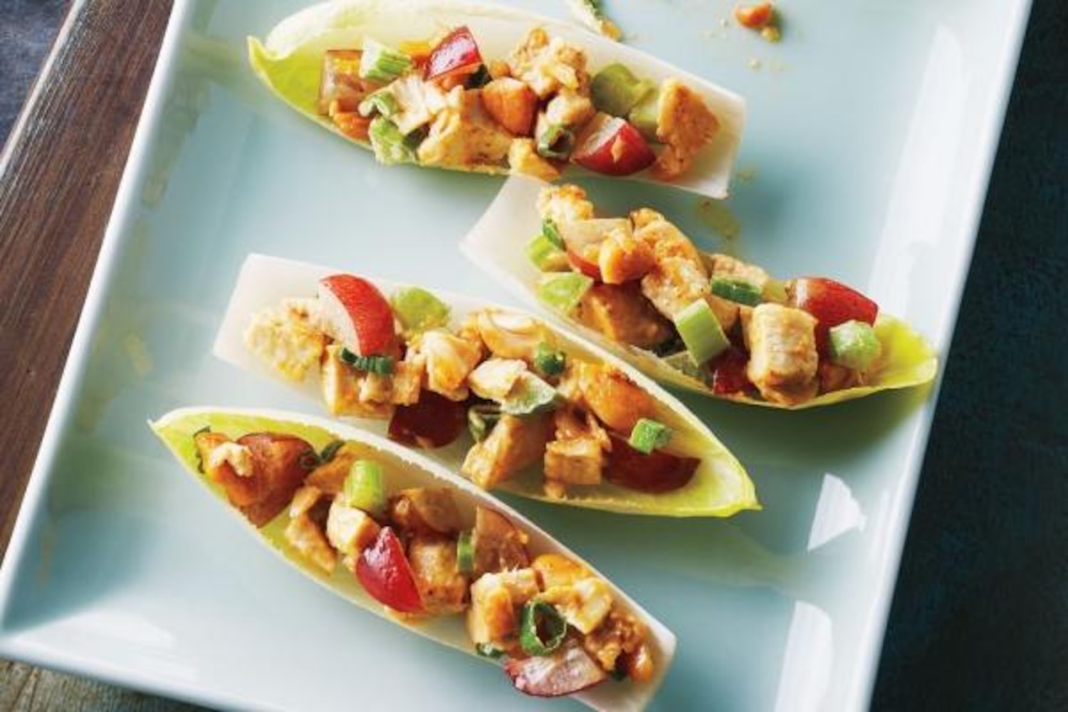 Endive spears are a sturdy base for this tasty filling and add a pleasant bitterness to the mix.