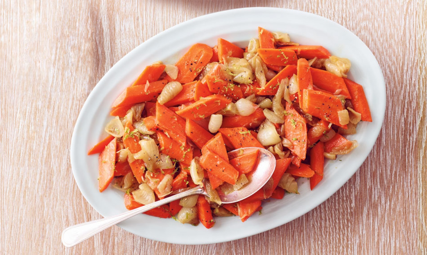 The trick to giving this simple side dish a company-worthy look is all in the way you slice the carrots. Rather than cutting them in standard coins or sticks, we’ve sliced them on the diagonal to add a hint of drama to your holiday spread.