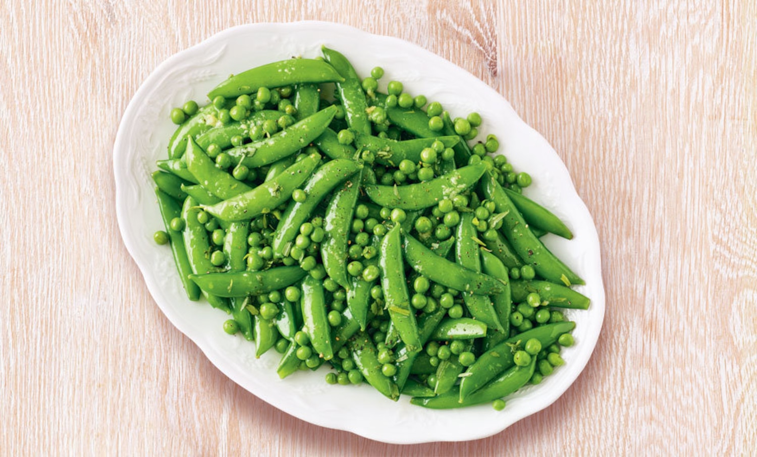 A mix of fresh and frozen peas gives this bright dish the best texture. If fresh sugar snaps aren’t available, simply double the frozen peas or substitute with broccoli or green beans, instead. The three-ingredient garlic butter is a great condiment to have on hand—simply toss with hot pasta or gnocchi and steamed veggies and you’ve got a meal in minutes!