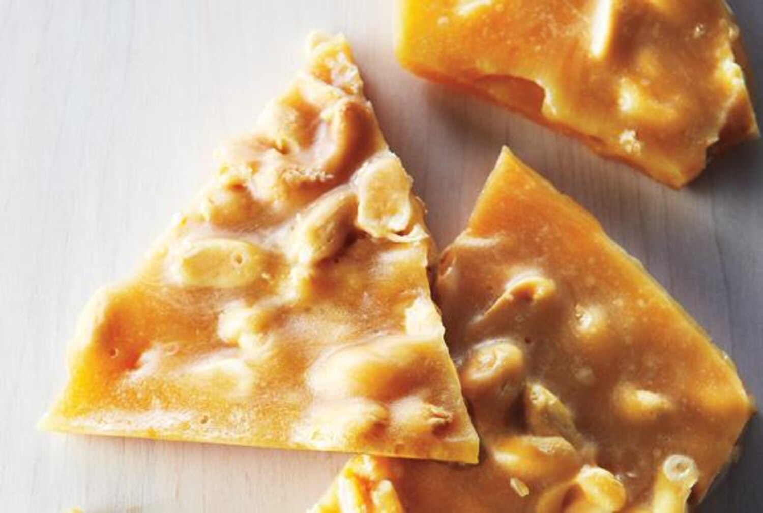 Brittle hardens very quickly, so be ready to stir in the peanuts and baking soda immediately. Be sure to spread the candy out as evenly as possible on the baking sheet before the sugar is too hard to handle. Break into pieces and enjoy as a sweet snack.