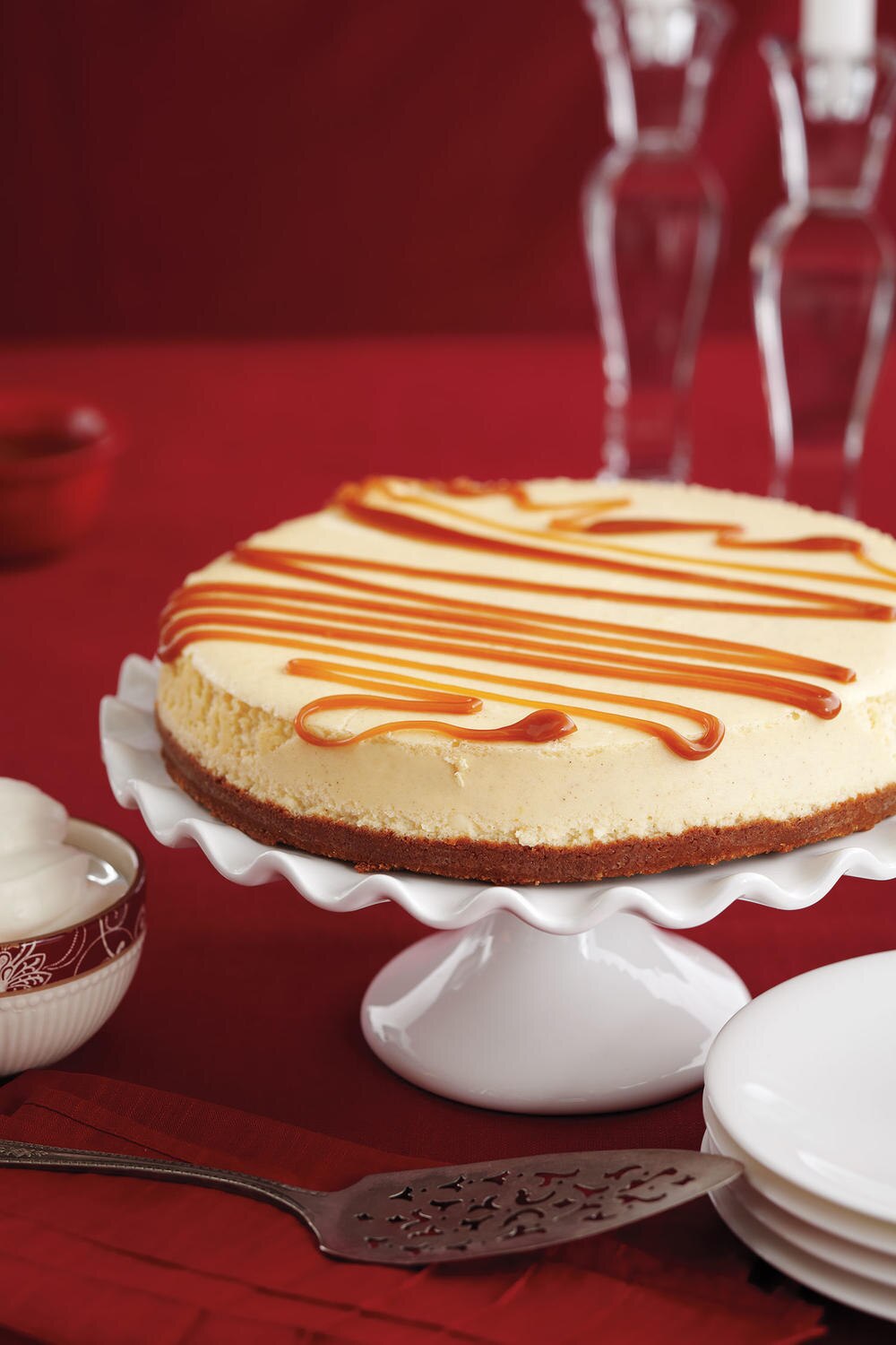 Finish your holiday meal with this rich and creamy caramel-topped cheesecake.