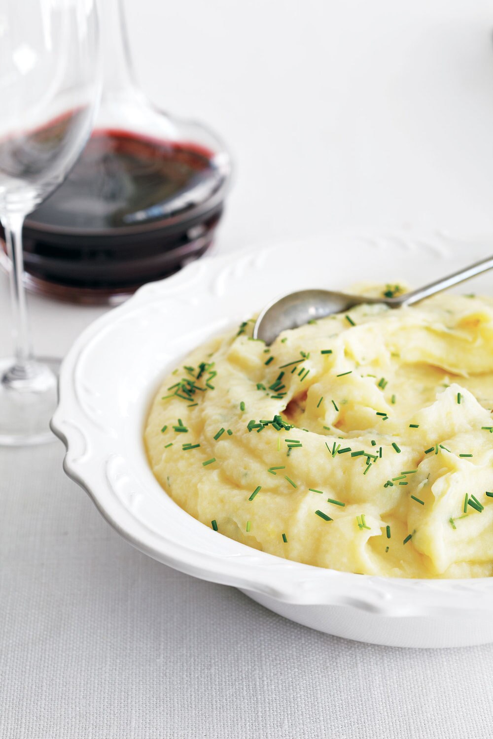 Looking for a change from plain old mashed potatoes? Spruce up your holiday table with this seasonal side dish. Buttermilk and Dijon mustard add pleasant tang and creamy texture (without the addition of cream). To avoid a gluey purée, do not overmix. Fresh chives add a festive hit of colour.