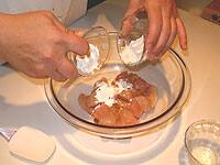 Using hands, toss to coat well. Let stand for 10 minutes so to allow mixture to adhere to chicken. |
