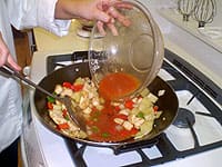 Cook, stirring, until sauce is thickened and chicken is coated, 2 to 3 minutes. |