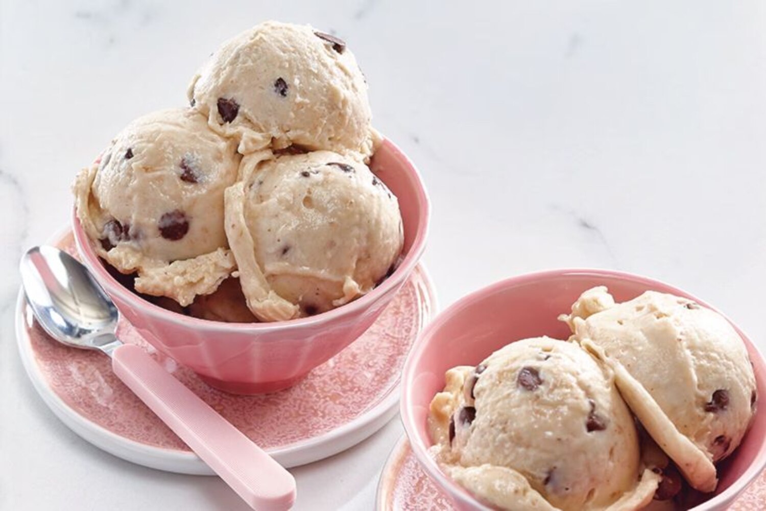 Nice cream is a vegan iced dessert made from mashed frozen bananas. It’s as creamy as soft serve and contains no dairy.