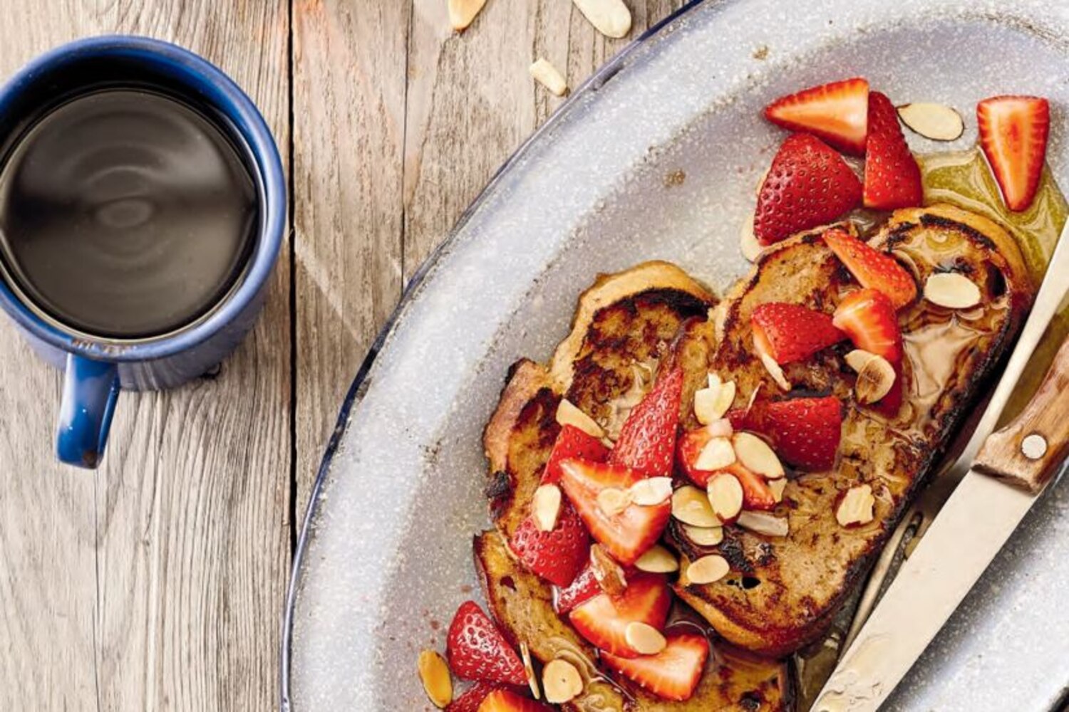 Banana, almond milk, and cinnamon make up the "egg" dip for this quick French toast.