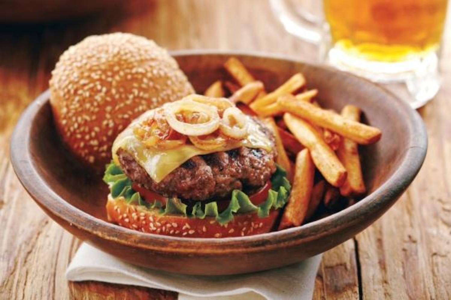 The classic turkey club gets an upgrade in this burger, featuring our Caramelized Onions and homemade buns.