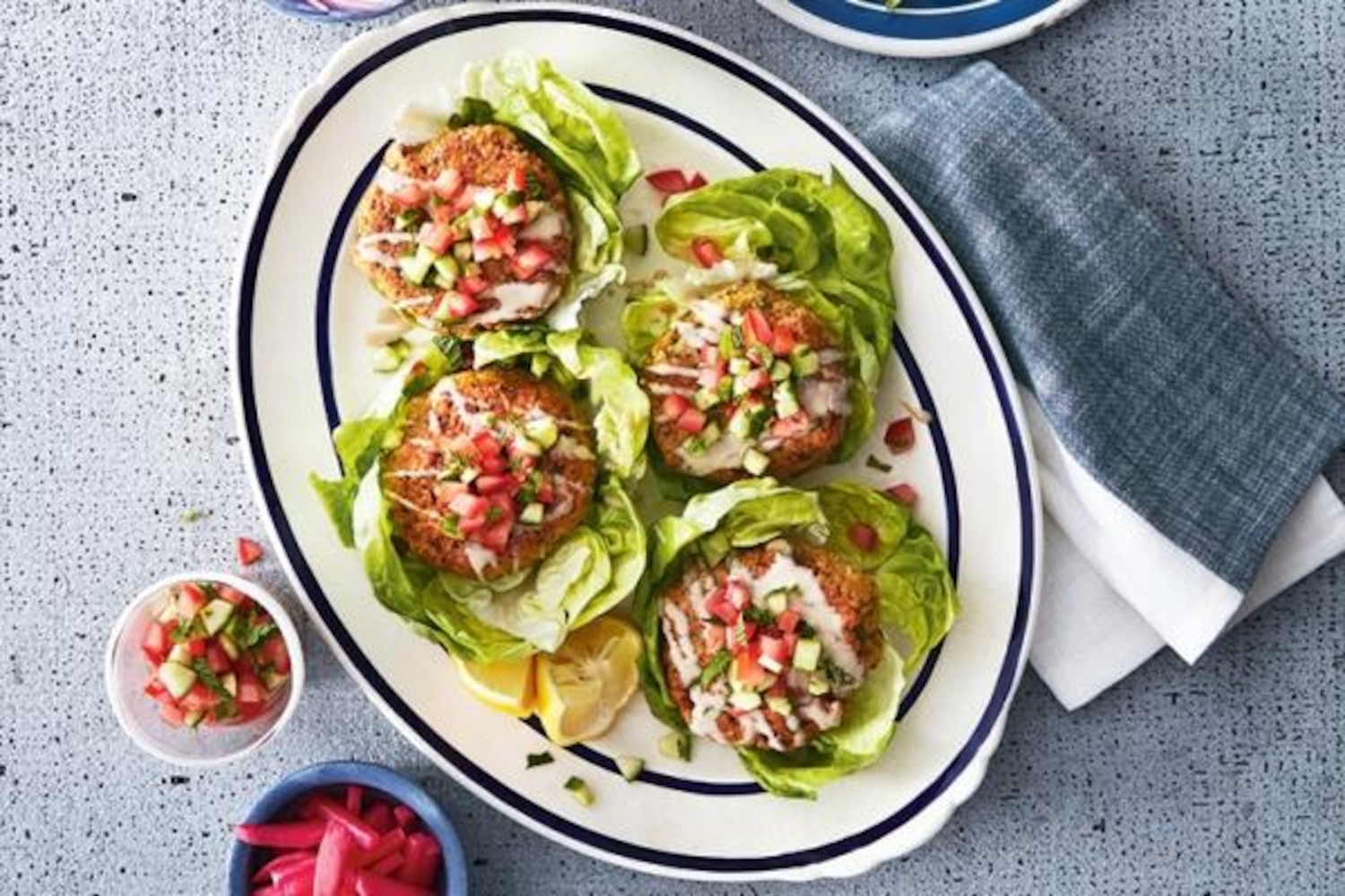 Tahini Falafel Lettuce Burgers with Cucumber Salsa