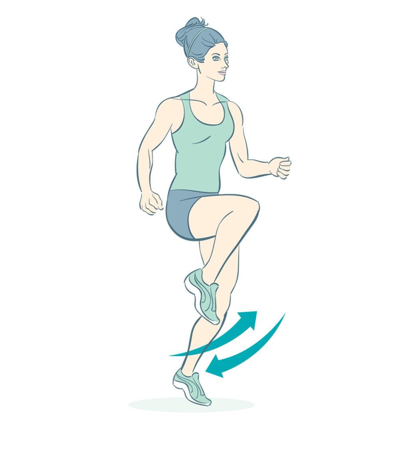 Modification: Marching on the spot, jumping jacks and boxing moves such as cross hooks or uppercuts Focus: Raising your heart rate Reps: Go as fast and as furiously as you can handle for one minute. Tip: There are no rules—just move your body as much and as fast as you can.