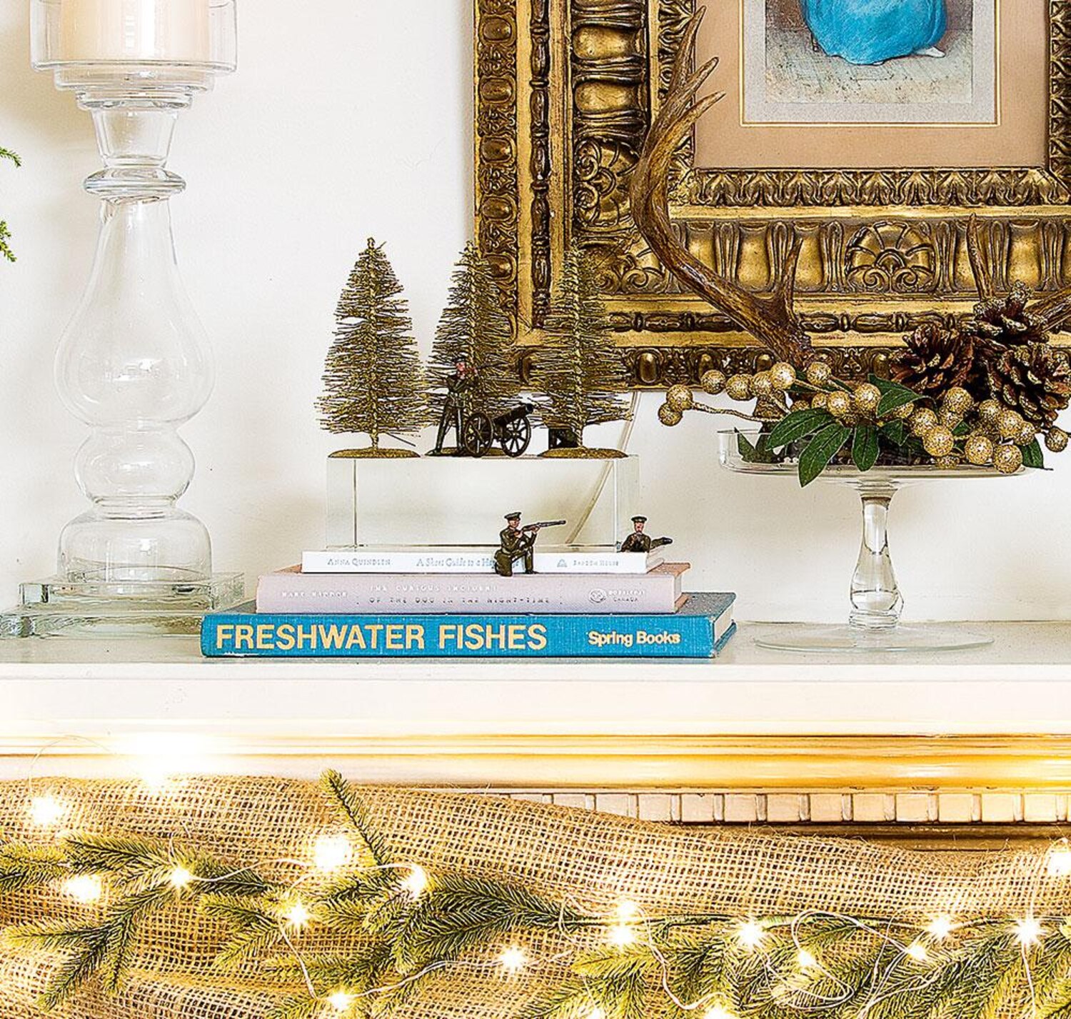 Bottlebrush trees are a seasonal decorating staple, but when have you seen them serve as protective cover? Vintage toy soldiers not only bring a quirky one-of-a-kind flourish to Bertelsen’s fireplace vignette, but they also have sentimental value—they were childhood favourites of her late father.