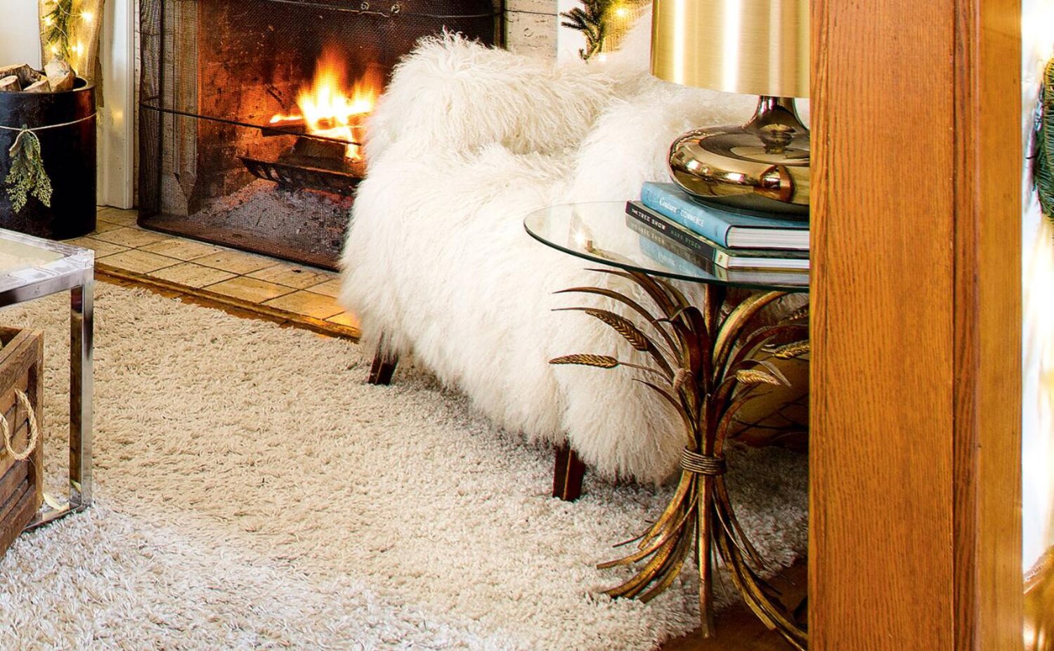 With its pared-down palette of whites and warm woods, Bertelsen’s home has a somewhat Scandinavian vibe. In keeping with that style, plush sheepskins are scattered throughout each room—not only underfoot but also on the dining table bench in the form of cozy seat cushions. “I have a cowhide rug that stays out year-round, but the sheepskins all get put away for the summer,” says Bertelsen. “They feel more special when you bring them out for only a few months of the year.”