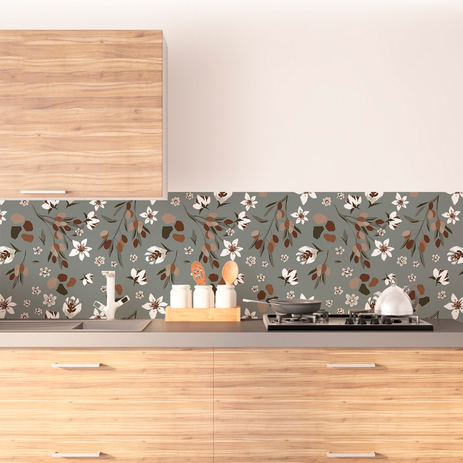 Did you know that a washable wallpaper can replace ceramic tiles to decorate your kitchen backsplash? This pattern evokes the Mediterranean and the region’s delicious cuisine—and creates a stylish spot to work on your cooking skills!