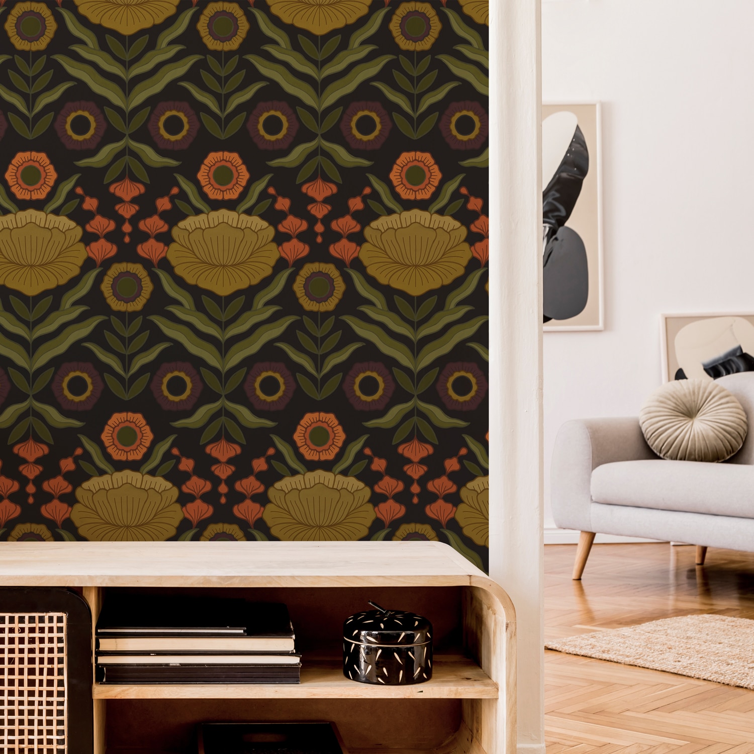 4. House of Hackney Hollyhocks Autumn WALLPAPER, $275/panel set, newwall.com.