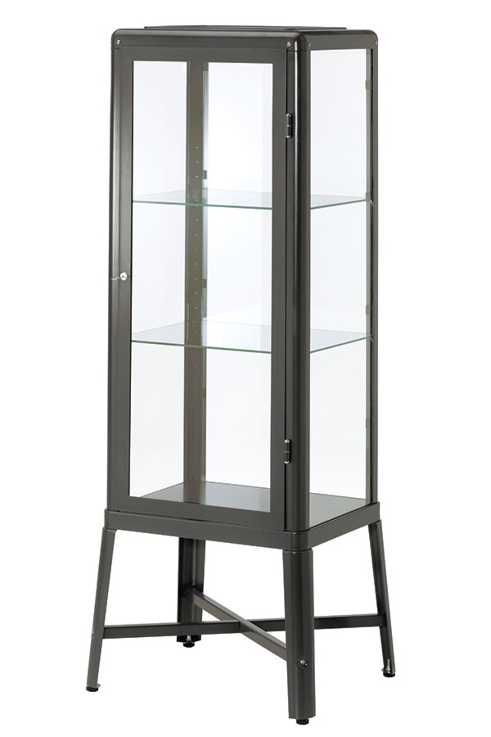 Make use of vertical storage by housing collectibles in this tall cabinet, constructed of industrial metal and tempered glass. $199