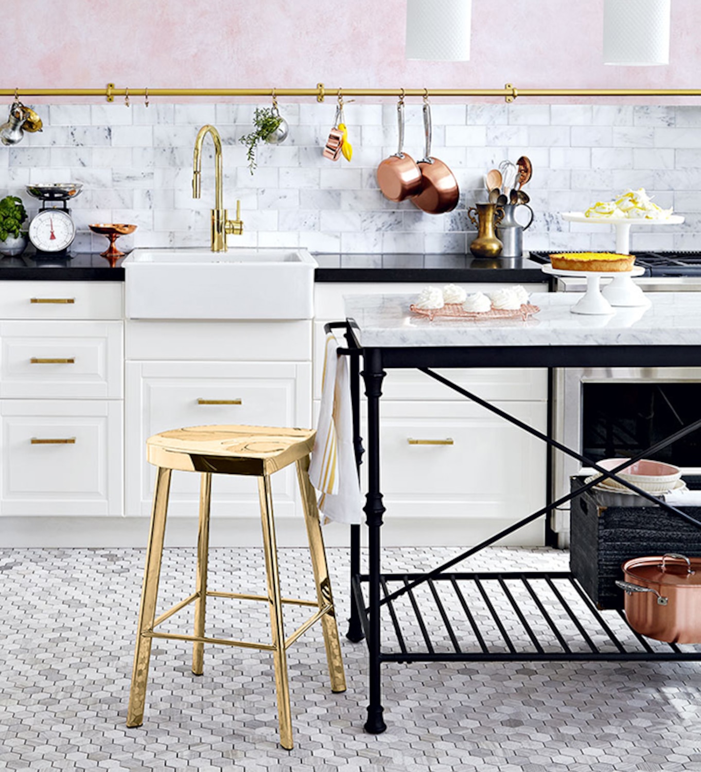 This kitchen is on trend for 2017 with its mix of brass, gold and copper accents. It's super glamourous without being too impossible to execute—just seek out some expert tips.