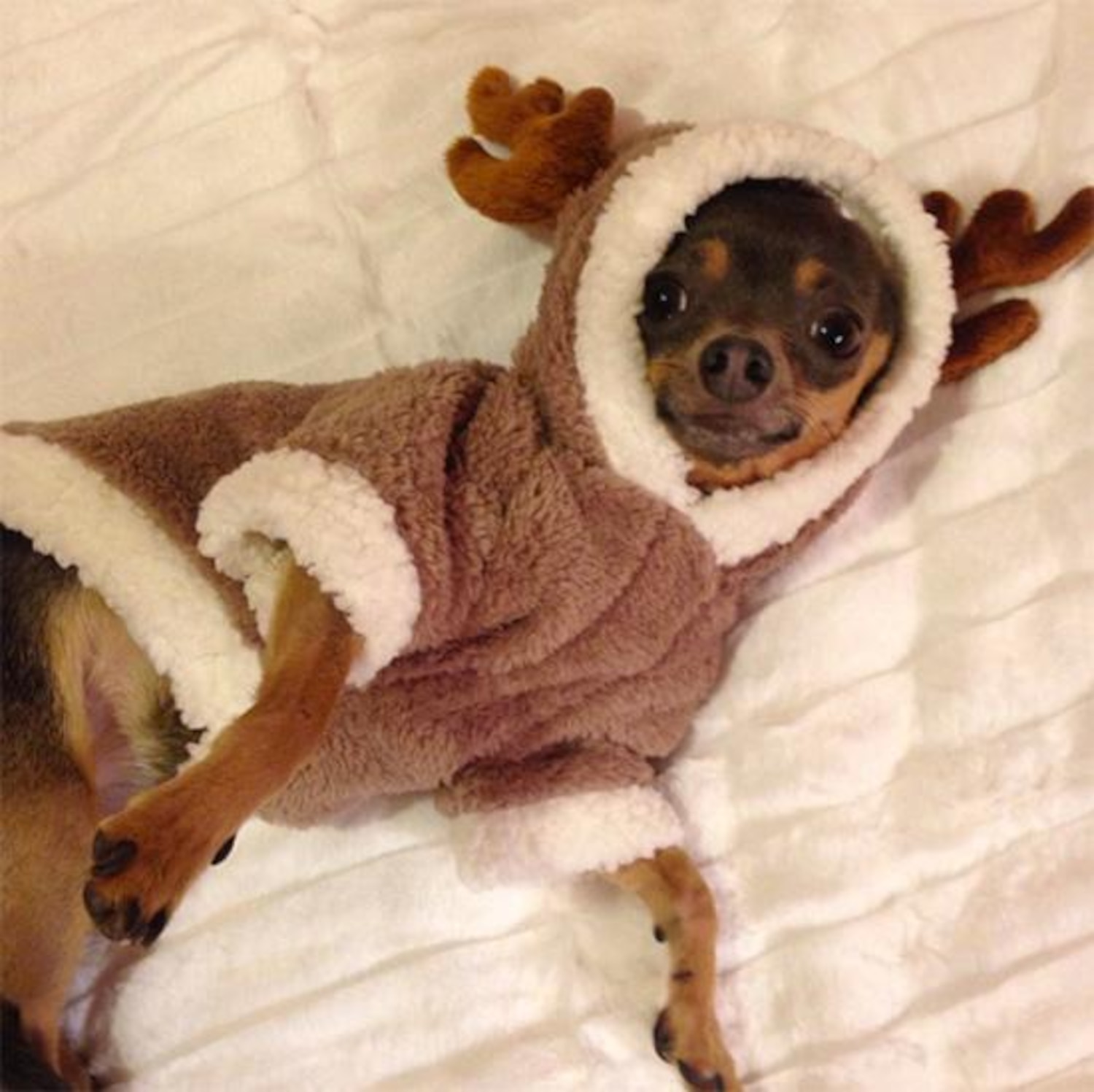 An adorable dog cozied up in a Santa suit, Christmas lights or a holly-jolly sweater: Is it enough to make you smile?